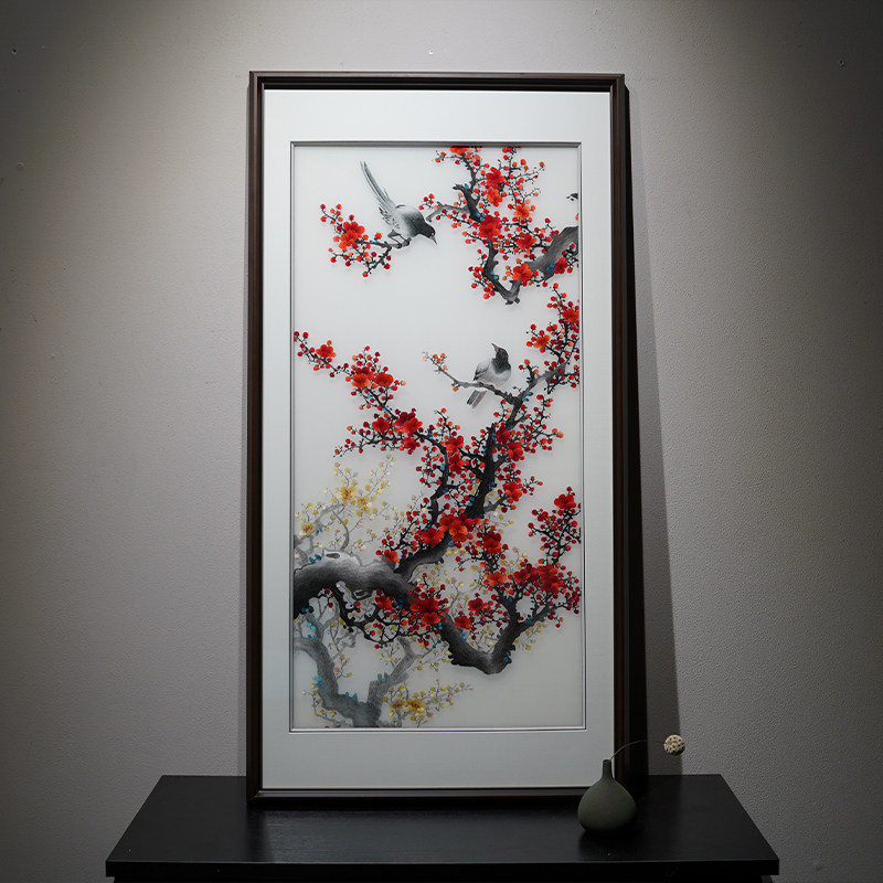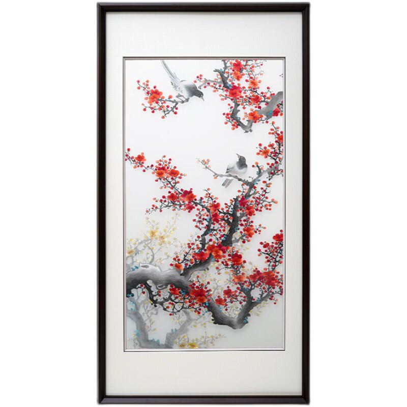 📚 苏绣成品挂画花鸟苏州纯手工刺绣喜上枝头玄关竖版客厅装饰艺术品