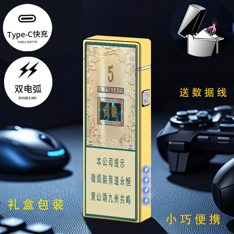 📚 烟厂草黄山原装商徽商5mg毫克点烟器双电弧USB充气电防风爆打火机