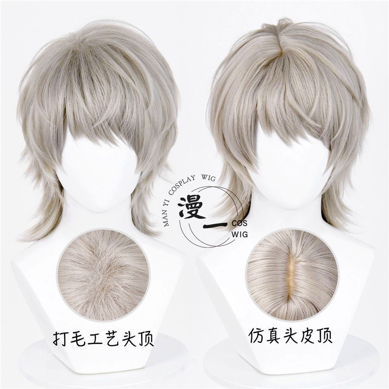 📚 恋与深空 沈星回cos假发 特调色 真头皮顶 反翘短发 狼尾头套