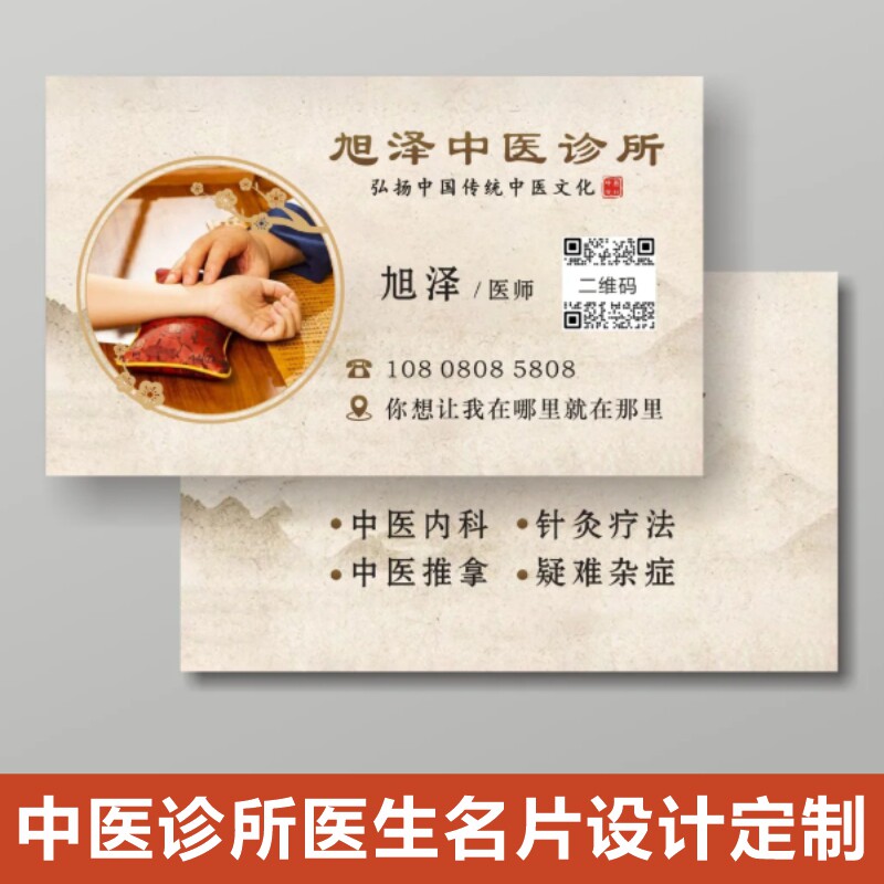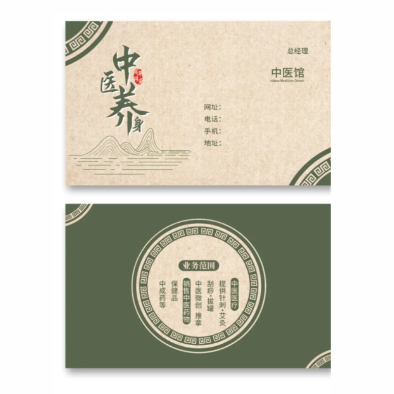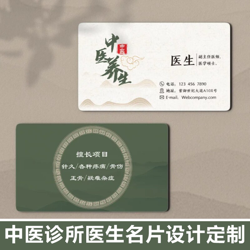 📚 中医文化馆诊所医生名片设计新中式老中医院预约卡复诊卡定制印刷