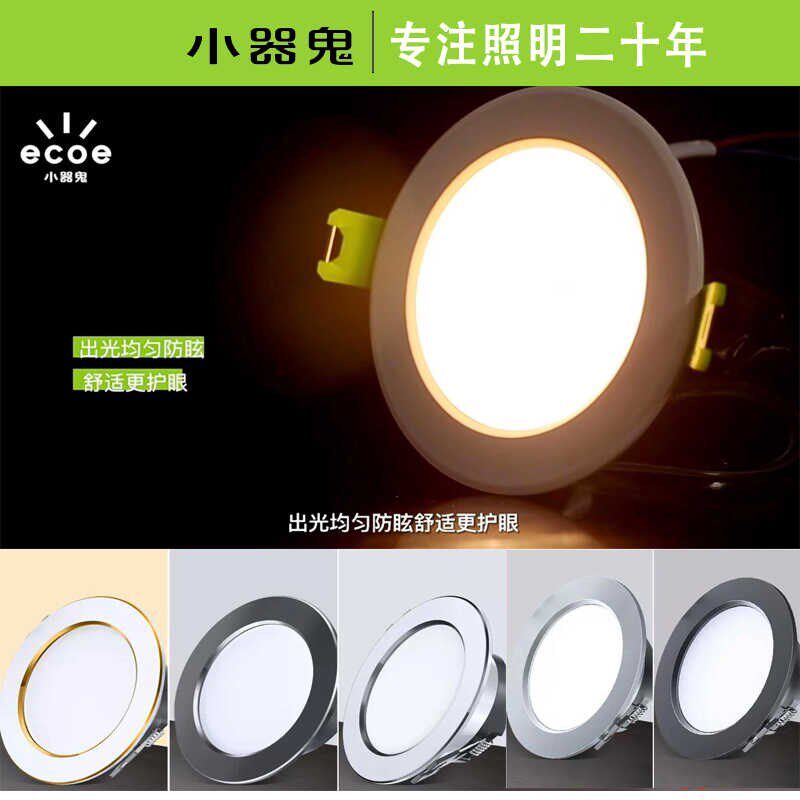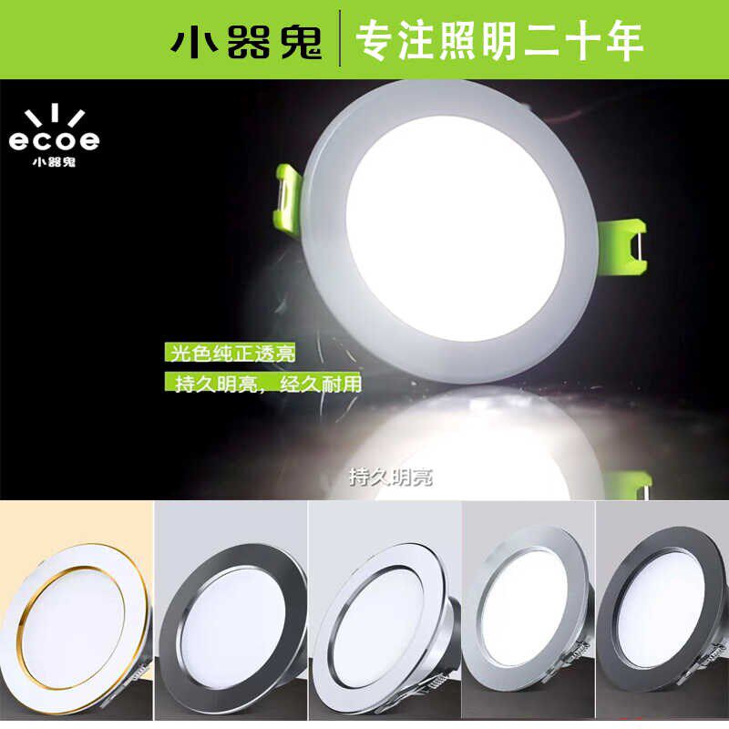 📚 小器鬼led筒灯嵌入式客厅孔灯吊顶家用筒灯三色变光7.5cm天花板