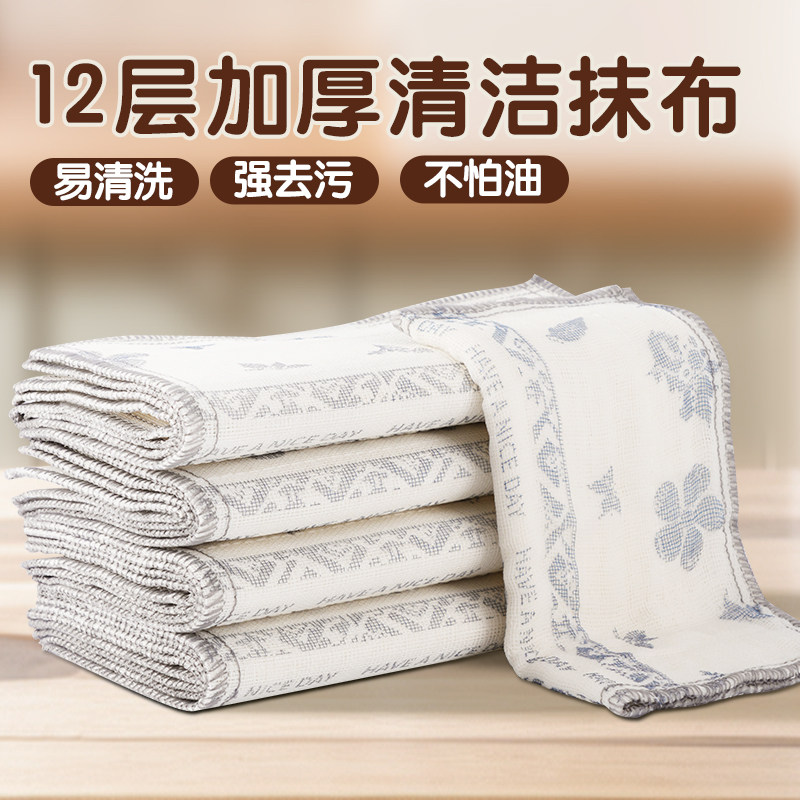 📚 棉纱印花抹布加厚不易掉毛不易沾油洗碗布家用厨房专用清洁毛巾