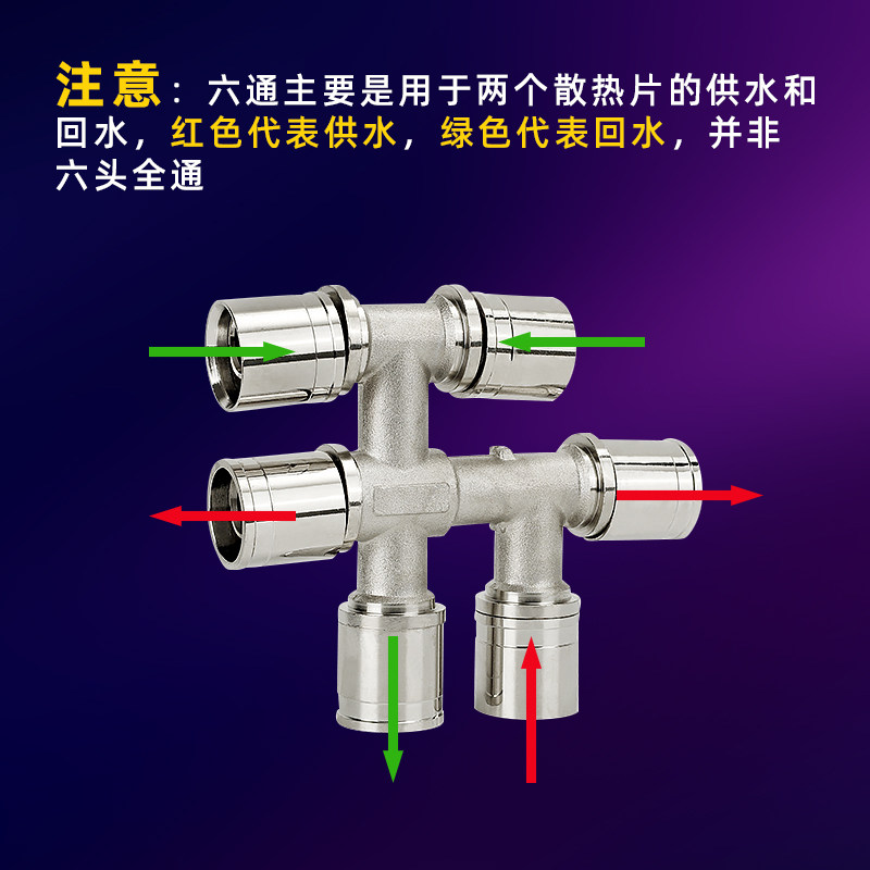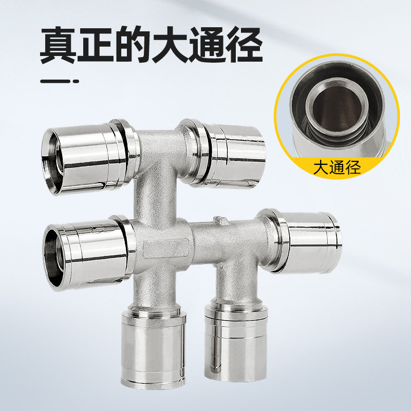 📚 铝塑管滑紧六通16mm20mm25mm全铜等径地暖管水管分水快速接头配件