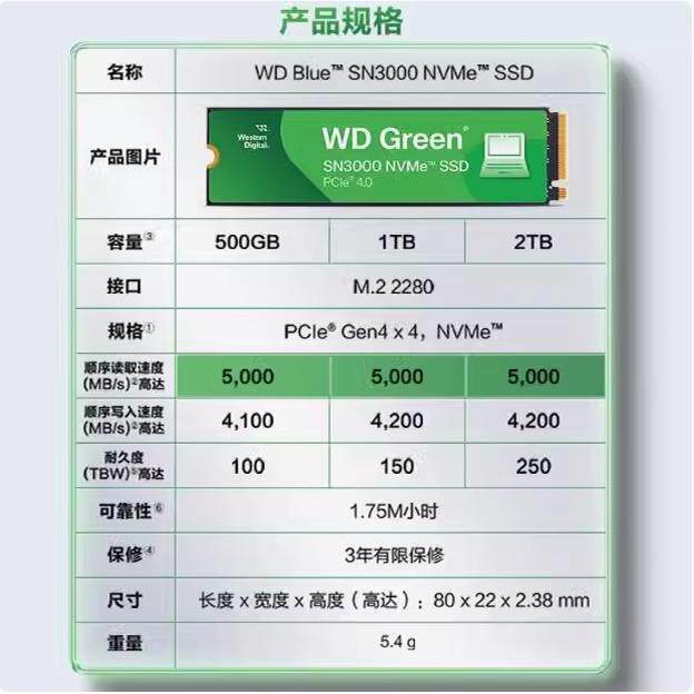 📚 WD/西部数据 1T SN3000西数M.2固态硬盘1t 2t NVMe笔记本台式机