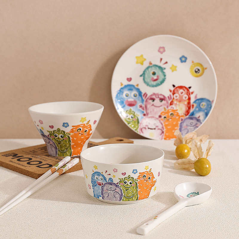 📚 ins风多巴胺可爱小怪兽儿童餐具米饭碗汤碗餐盘套装厨房私厨食欲