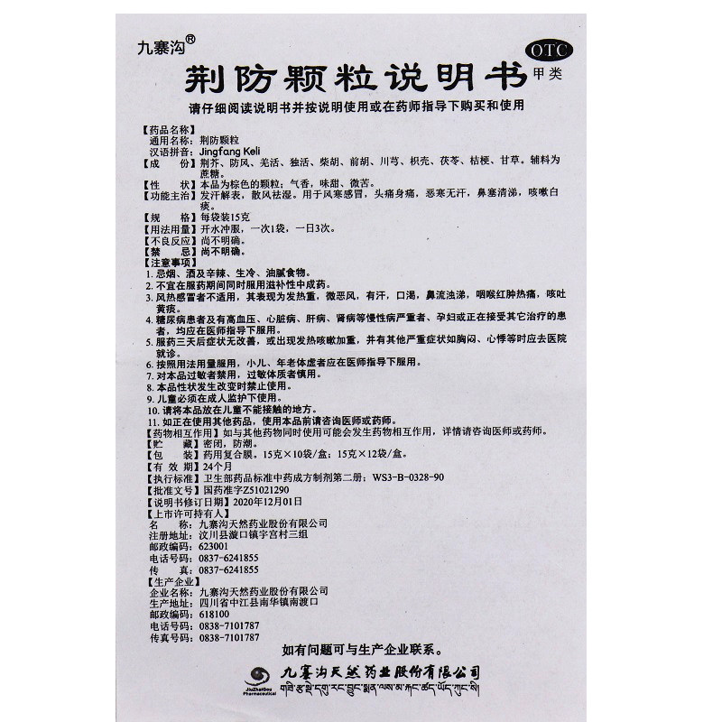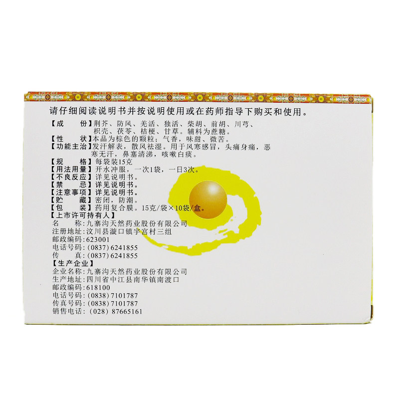 📚 九寨沟荆防颗粒中成药成人儿童风寒感冒咳嗽冲剂10大袋非败毒散