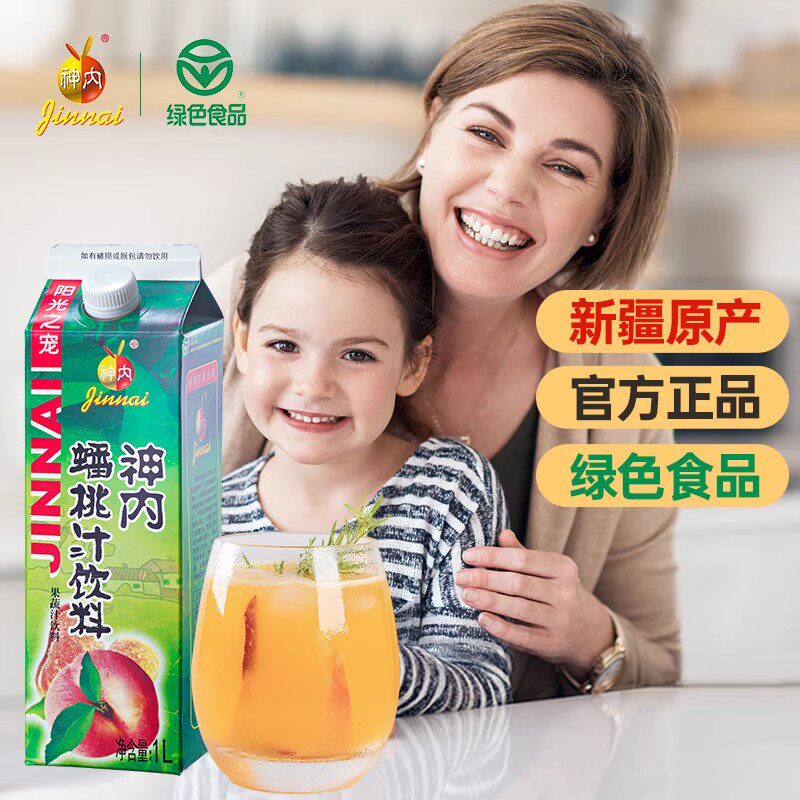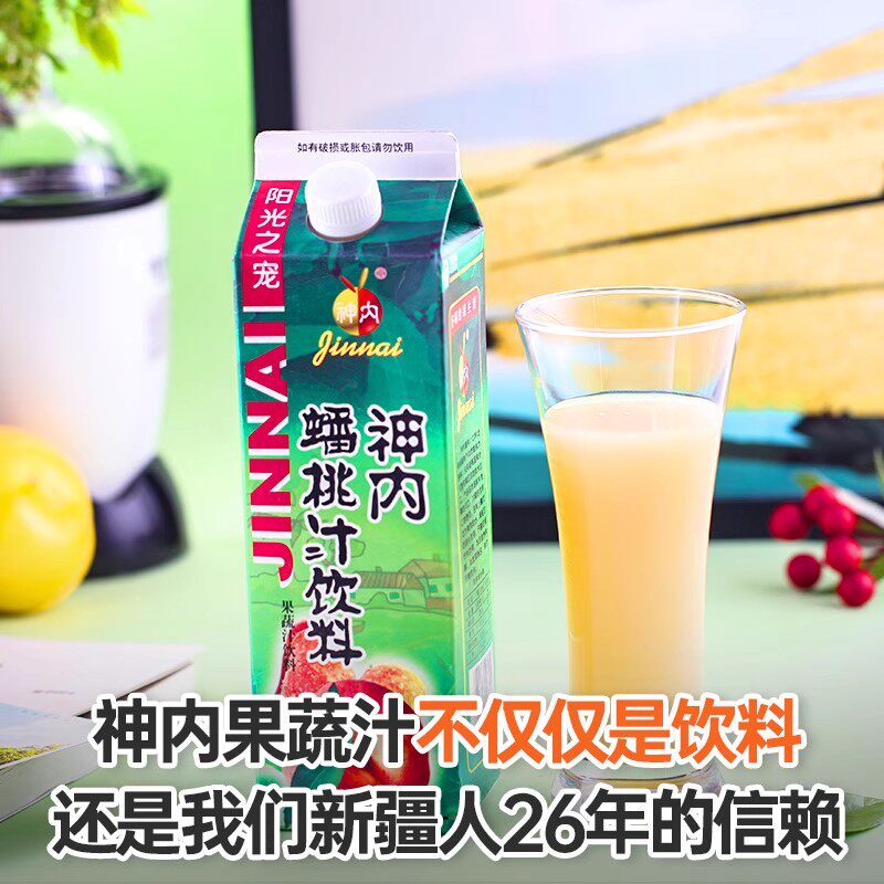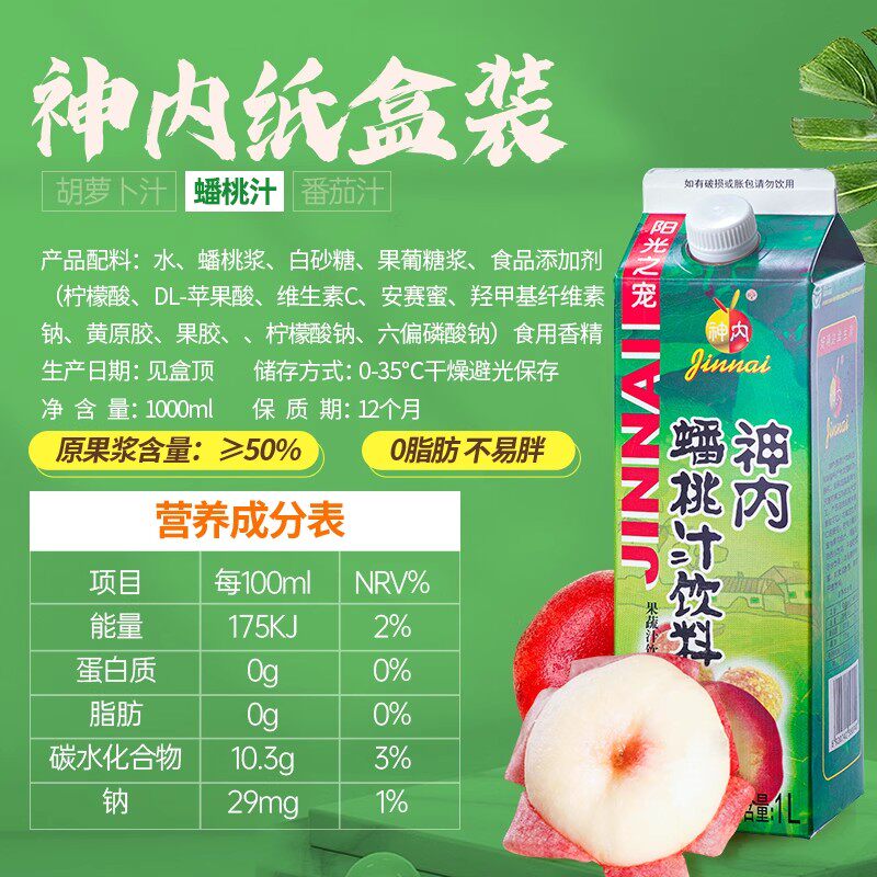 📚 神内蟠桃汁盒装1L鲜榨大瓶果汁轻断食绿色饮品果味代餐喝纯果蔬汁