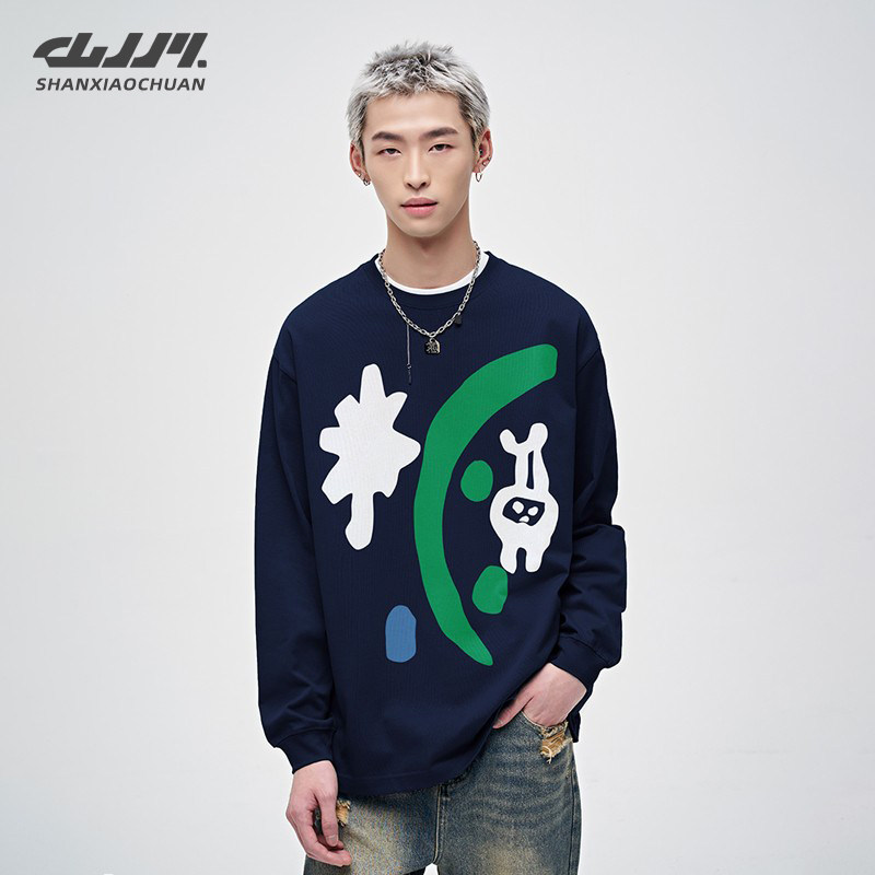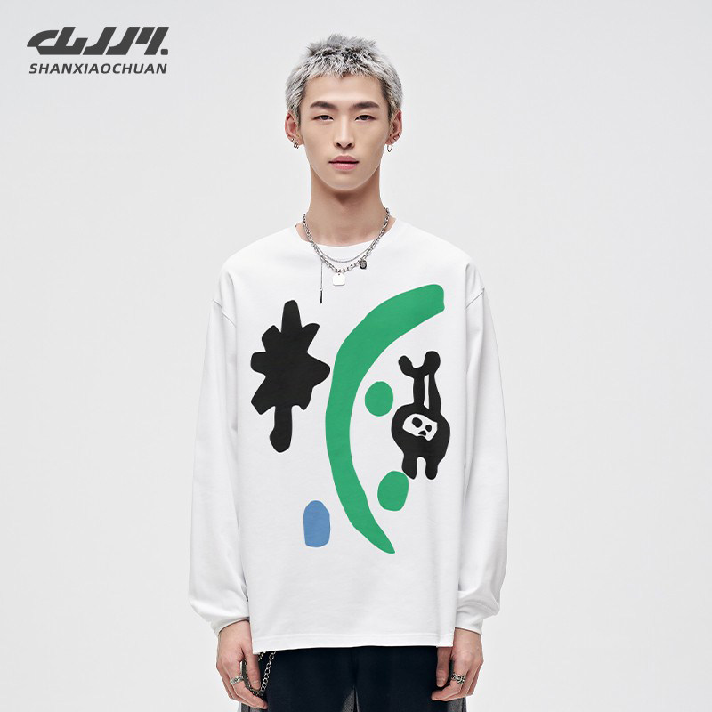 📚 山小川潮牌春秋季长袖t恤男纯棉国潮2025新款全棉情侣款男生体恤