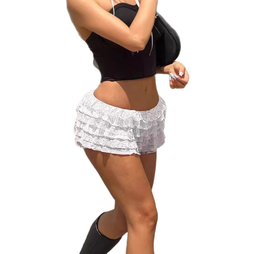 📚 Ribbon sequined low waist cake shorts 蕾丝花边拼接低腰蛋糕裤
