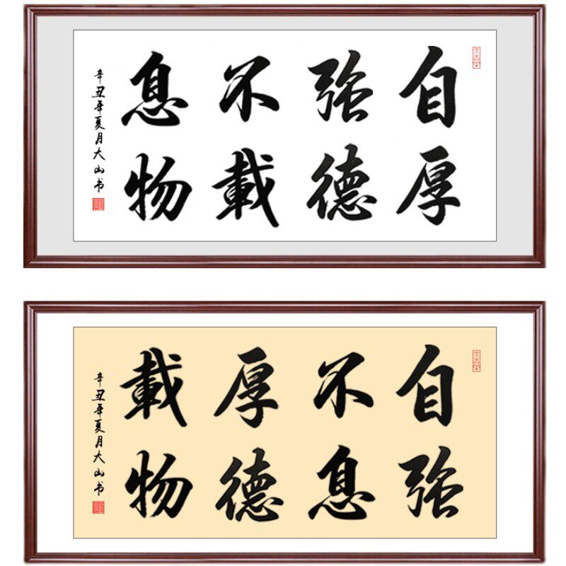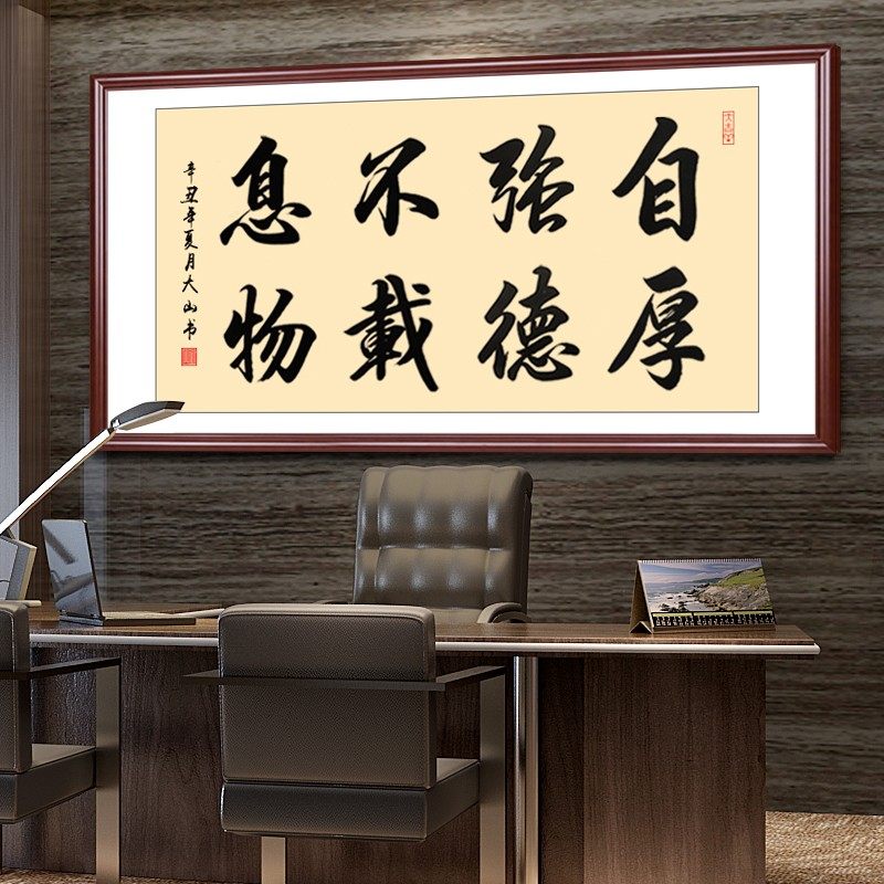 📚 自强不息厚德载物手写书法字画装饰画书房客厅励志挂画横幅框装饰