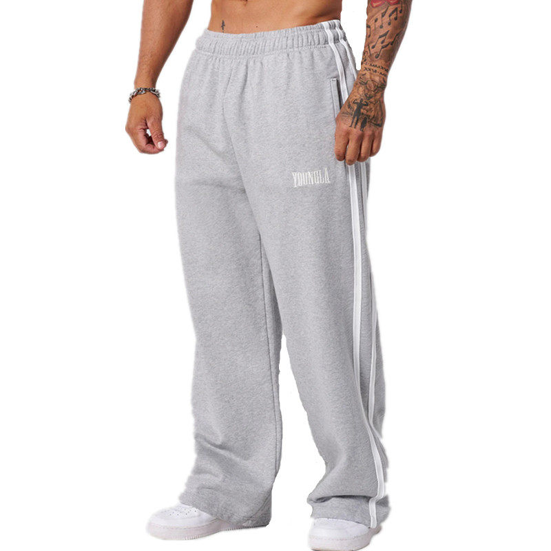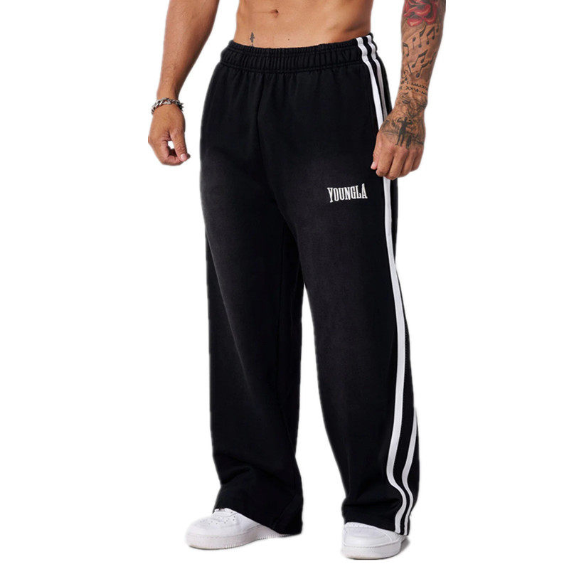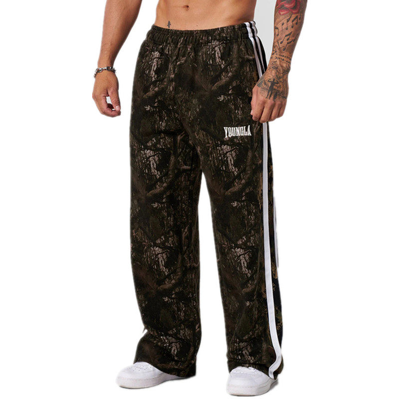 📚 YOUNGLA美式迷彩运动裤复古休闲直筒长裤健身房跑步拼条裤子