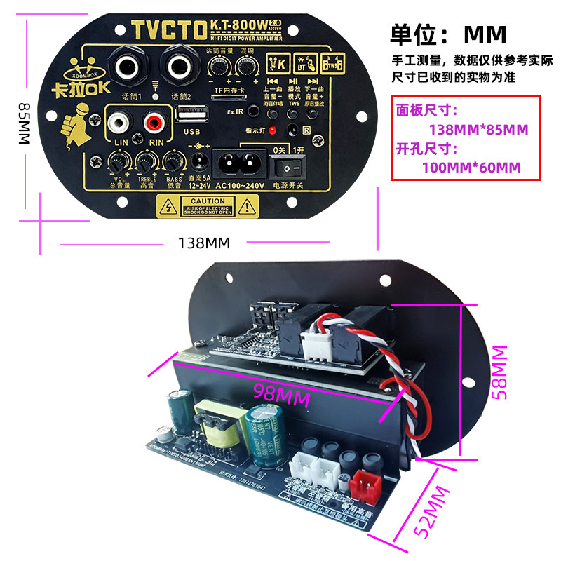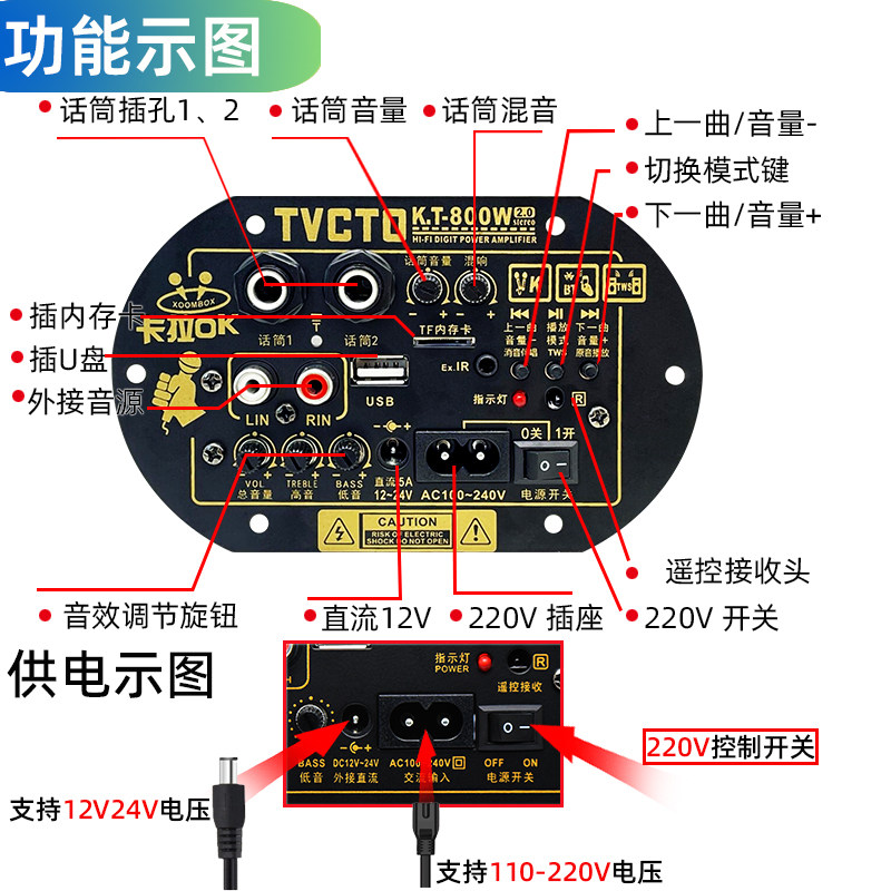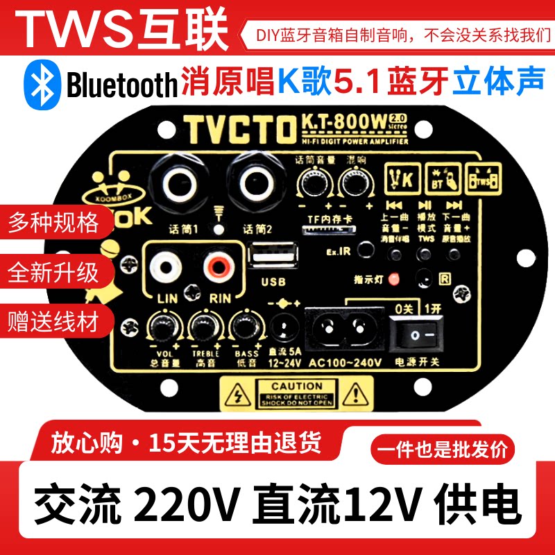 📚 KT800大功率立体声双声道家用220音箱改装话筒消原唱蓝牙功放主板