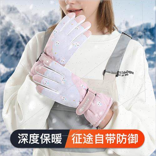 📚 Winter outdoor sports ski gloves women padded thickened cycl