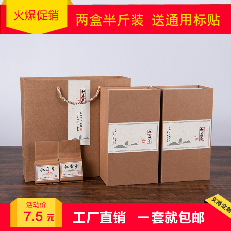 📚 茶叶礼盒装空盒送礼通用高档包装盒大红袍简易红茶牛皮纸盒半斤装