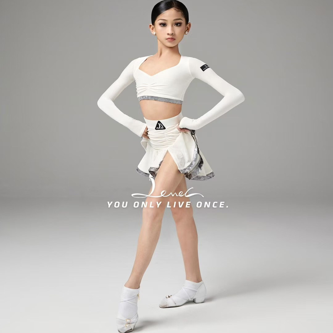 📚 Level拉丁舞服女儿童秋季新款练功服心领长袖上衣包臀半裙训练服
