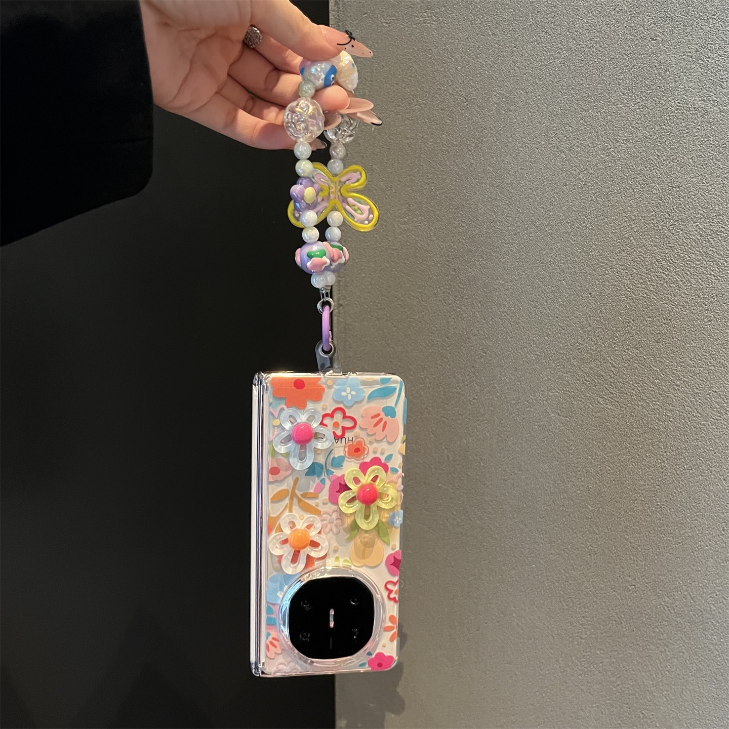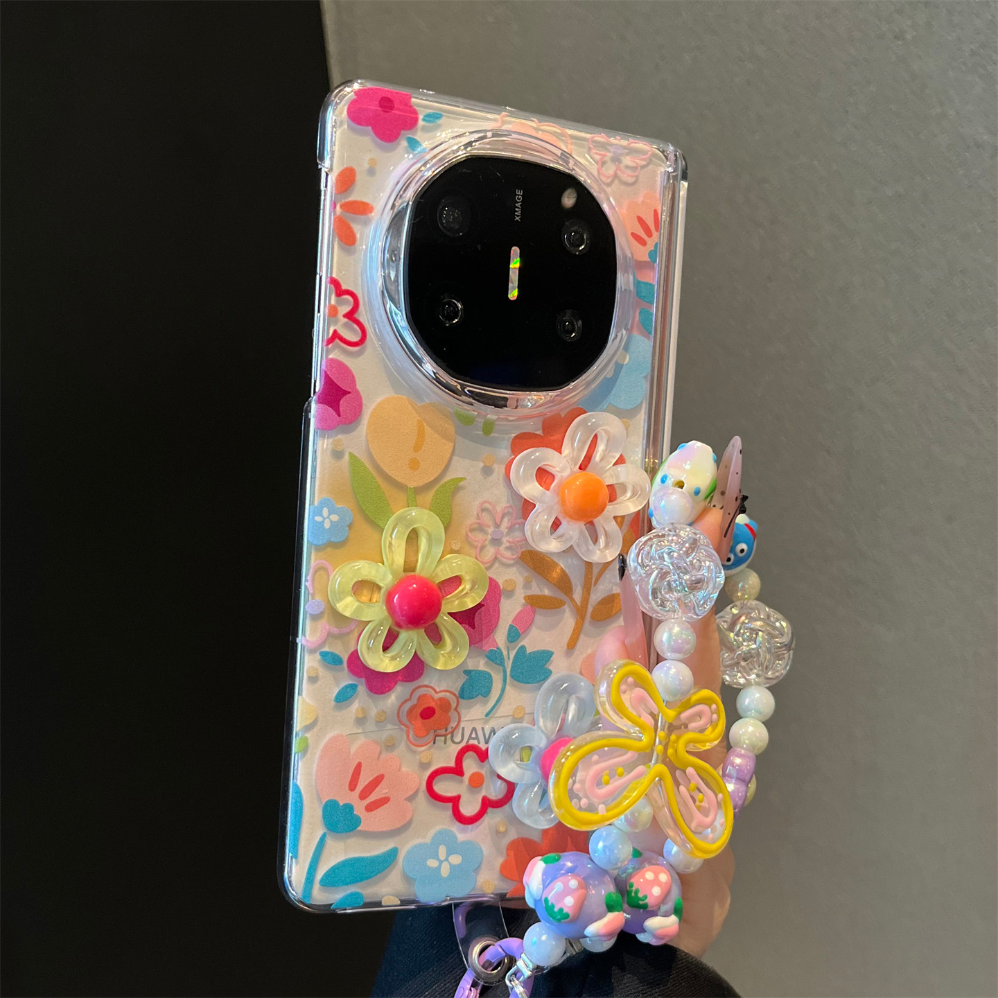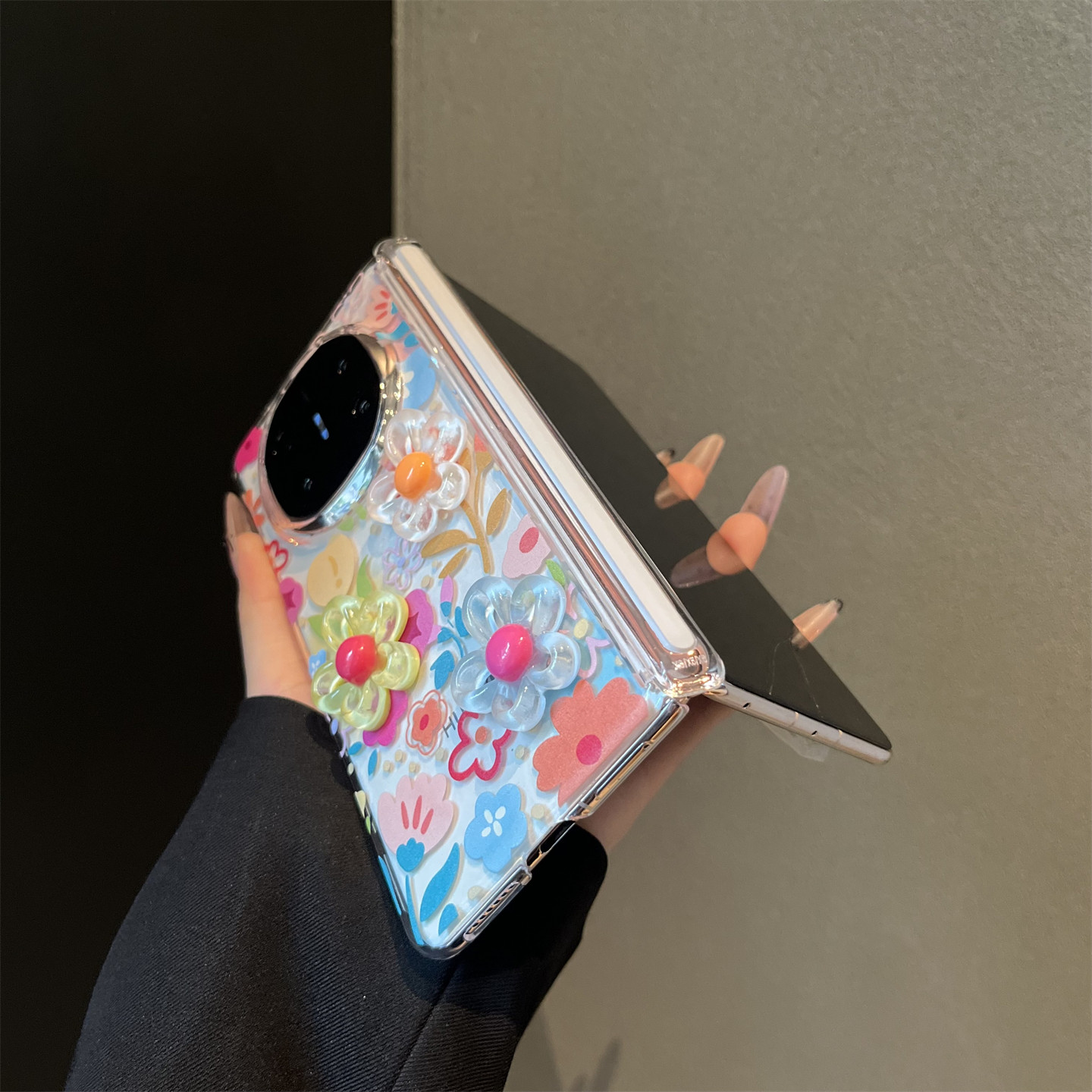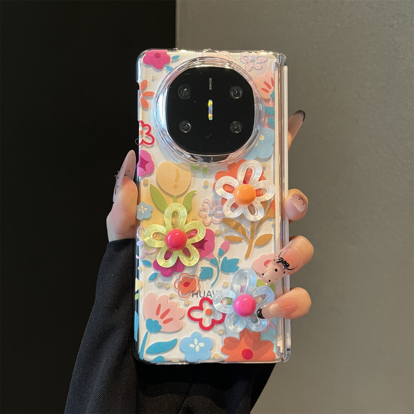 📚 ins风立体三色花适用华为MateX7典藏版折叠屏手机壳新款MateX6磁吸中轴高级感X5女款mateX3防摔保护套