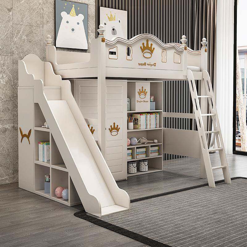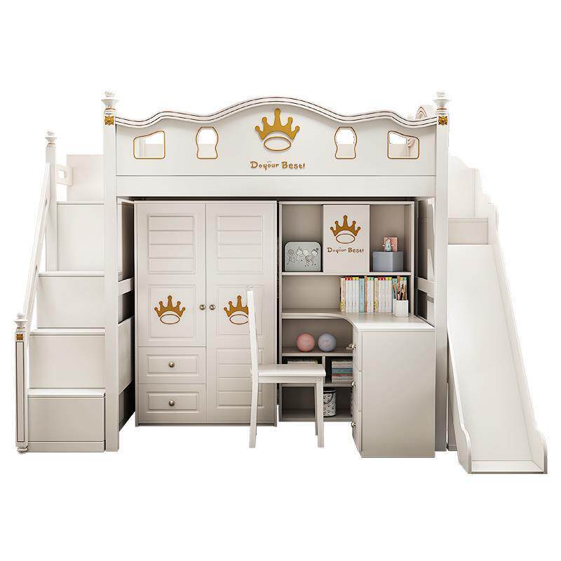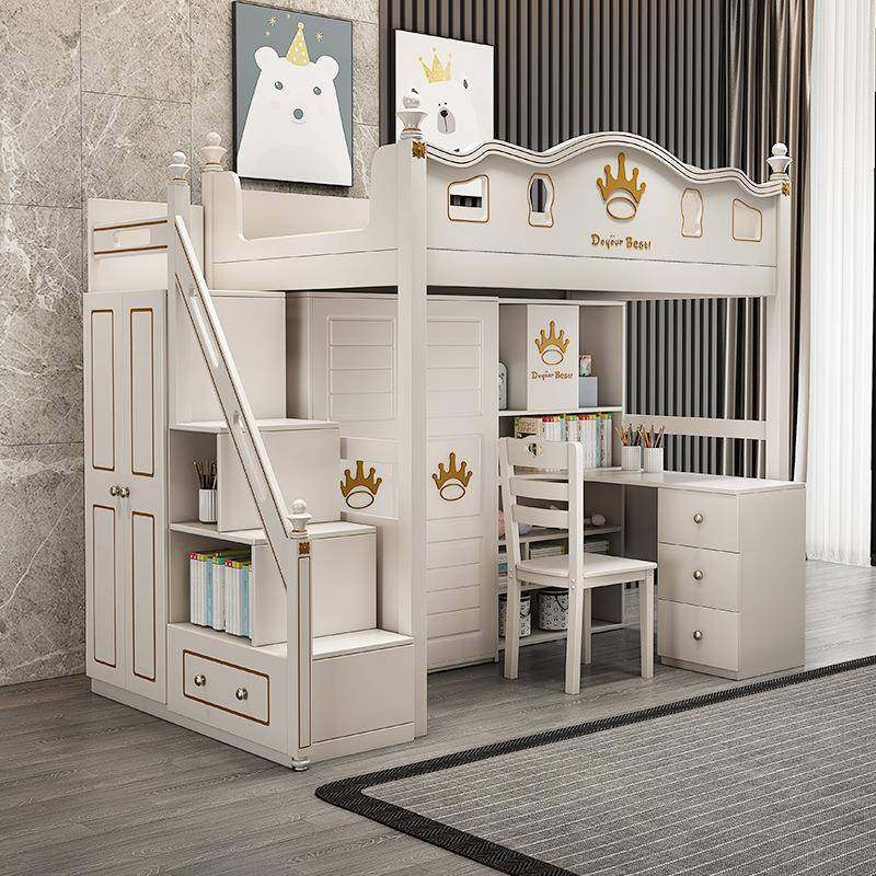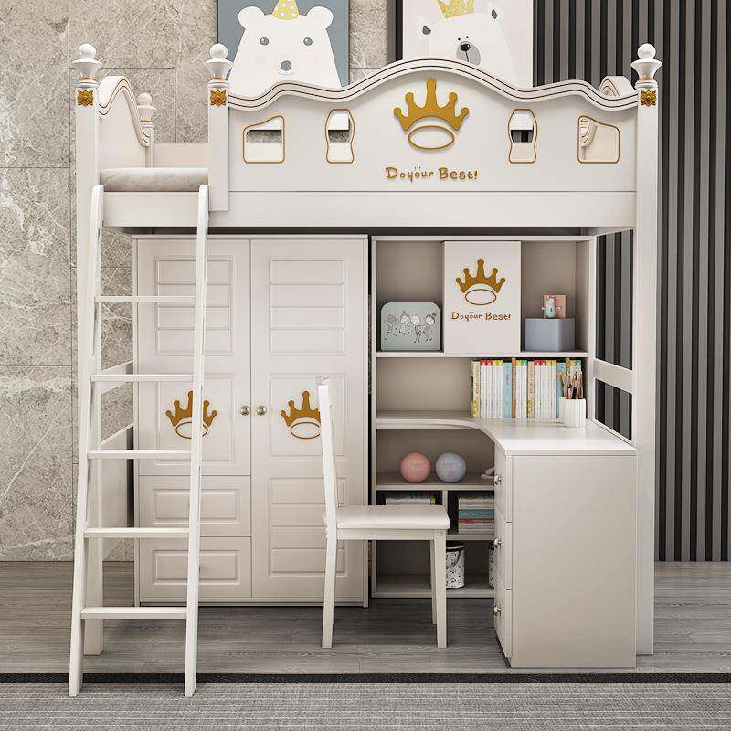 📚 床美式上床下书衣桌一体成人组合高低铺床层床双带1023皇冠柜高架