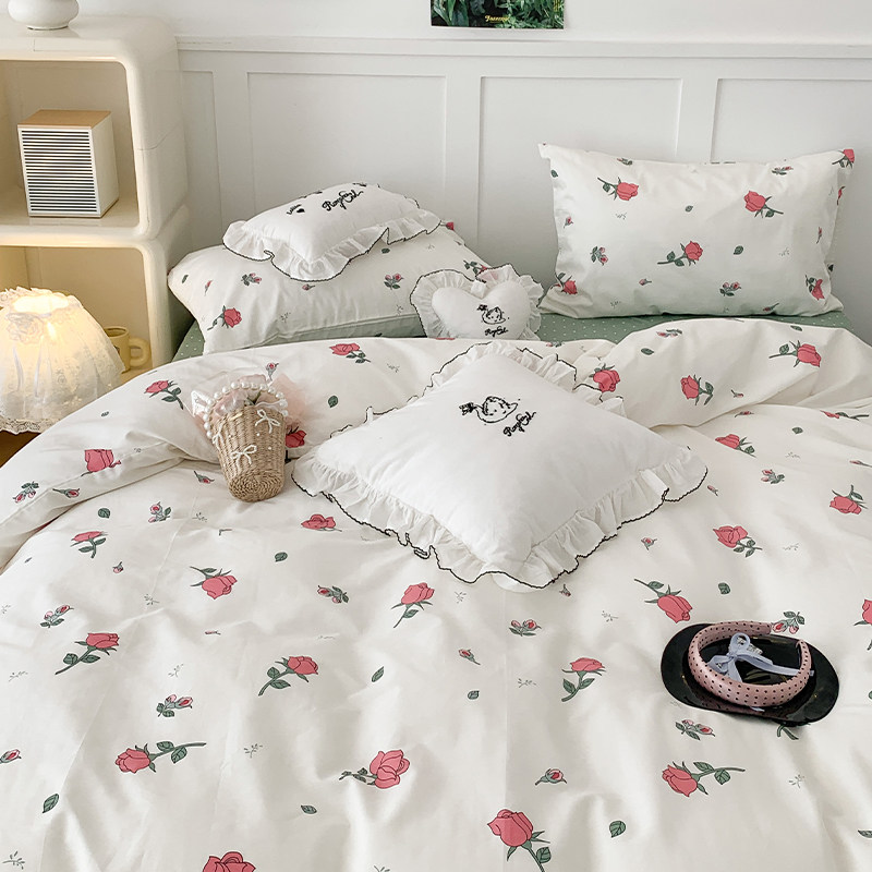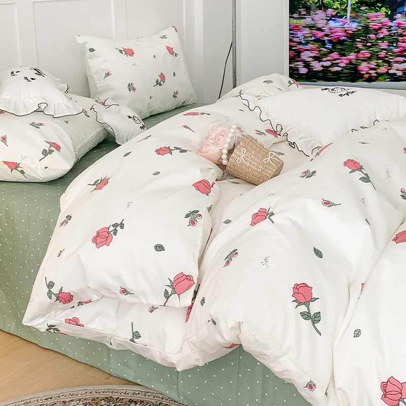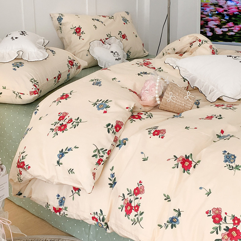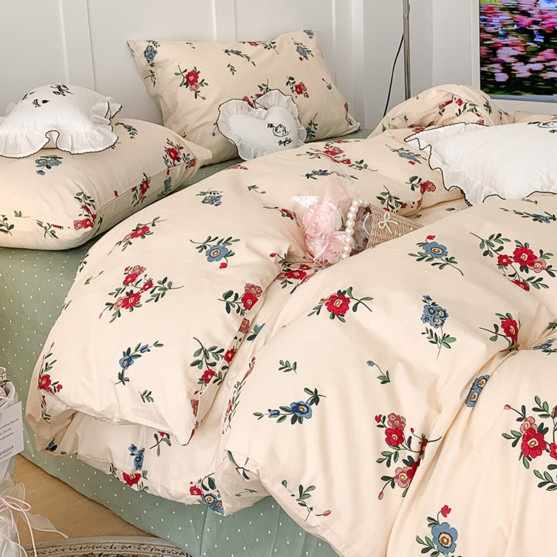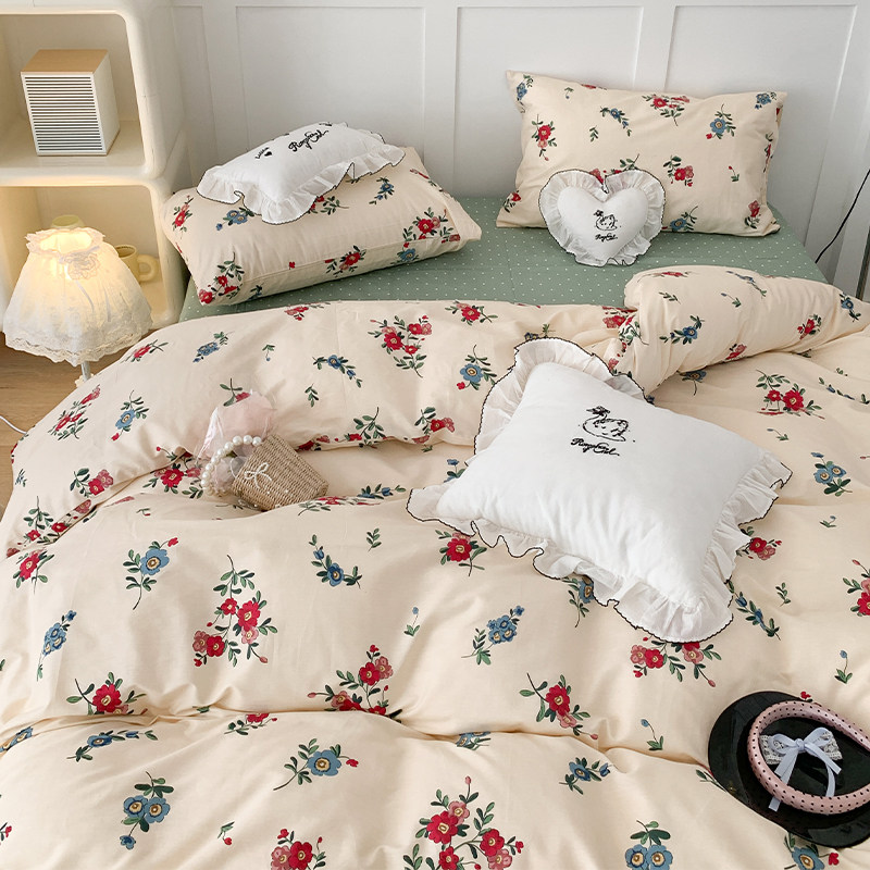 📚 复古小碎花纯棉四件套田园全棉被套少女心1.5m1.S8米床单床笠床品