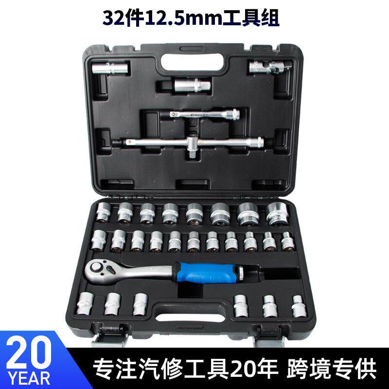 📚 32件12.5MM套筒扳手套装1/2"综合机修套装工具72齿棘轮扳手汽修保