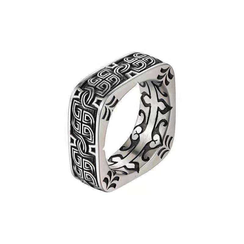 📚 新款戒指男复古方圆盘古男士个性霸气指环饰品权力的游戏周边黑铁