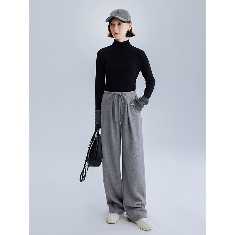 📚 Dotdrobe多着 醋酸羊毛混纺 抽绳阔腿裤女春醋酸裤花灰/咖色/黑色