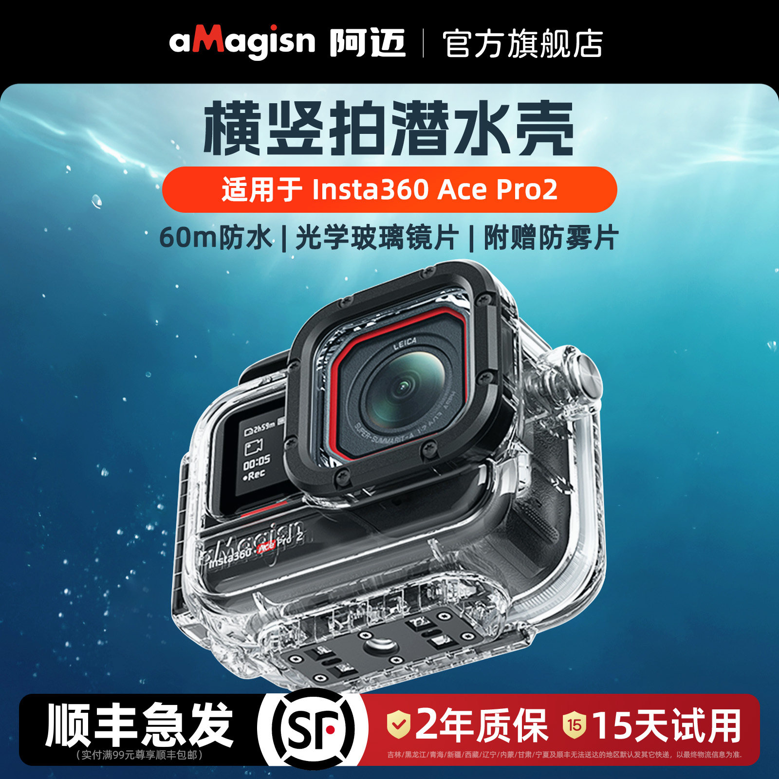 📚 aMagisn阿迈适用影石Insta360 Ace Pro2潜水保护壳60M防水保护罩配件