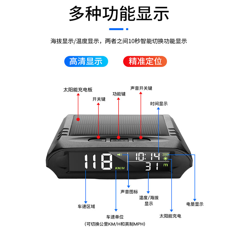 📚 2025新款车用电子时钟gps自动授时北斗车速车载hud抬头显示器海拔