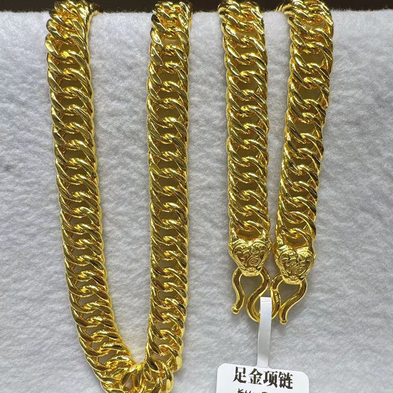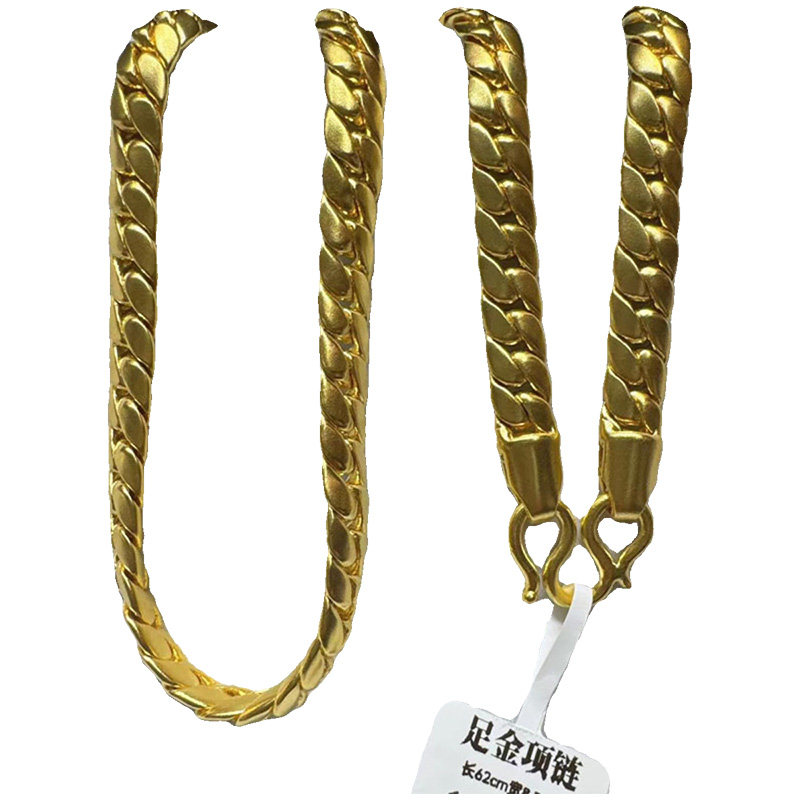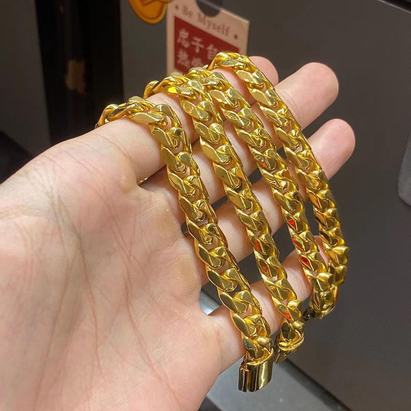 📚 足金9999古巴链黄金项链男龙骨骑士老板纯金显粗马鞭链定制送男友