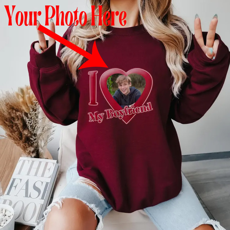 📚 I Love My Boyfriend Your Photo无帽卫衣照片定制送男友礼物纯棉