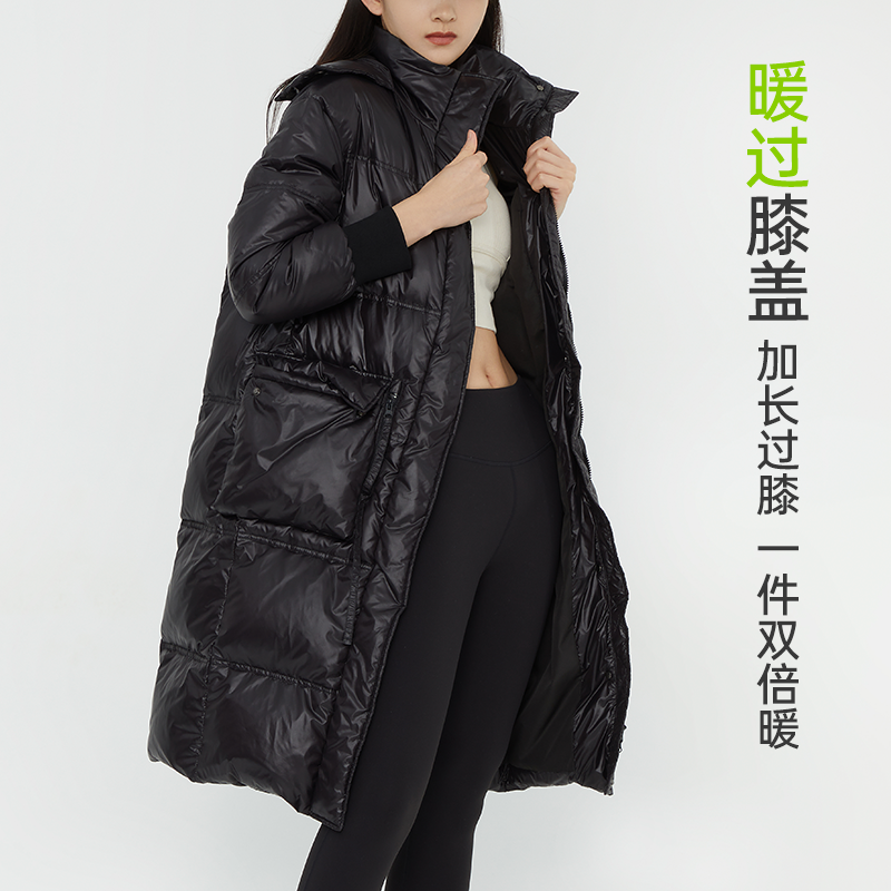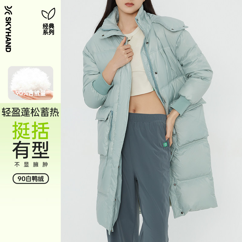 📚 SKYHAND羽绒服女25年新款长款白鸭绒轻薄保暖连帽工装休闲外套