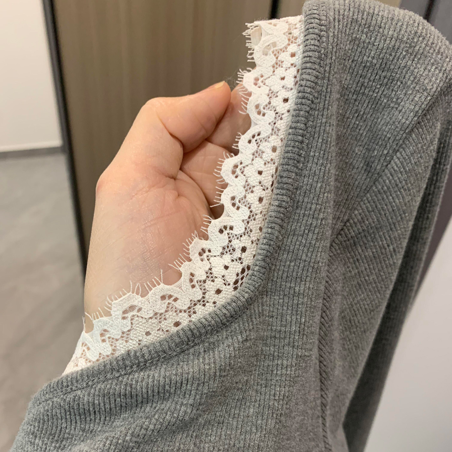 📚 蕾丝低领长袖保暖内衣女带胸垫无痕秋衣内搭秋冬打底衫德绒上衣