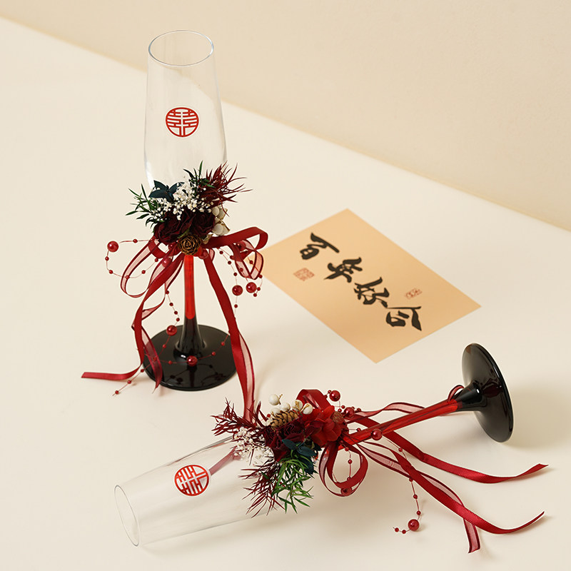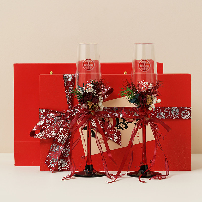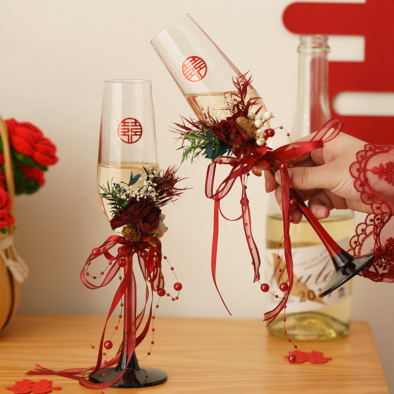 📚 仲夏知己香槟杯结婚敬酒杯一对手工diy订婚结婚礼物送新人高脚杯