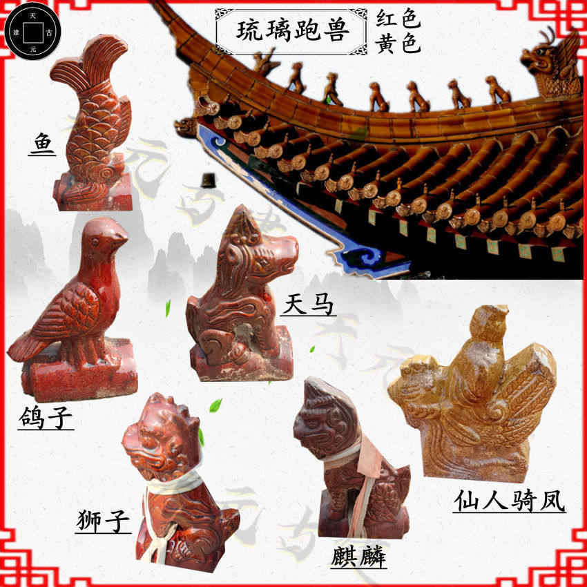 📚 新款古建中国大陆浮雕青瓦琉璃瓦连锁瓦五脊六兽白色飞鸽红色翘角