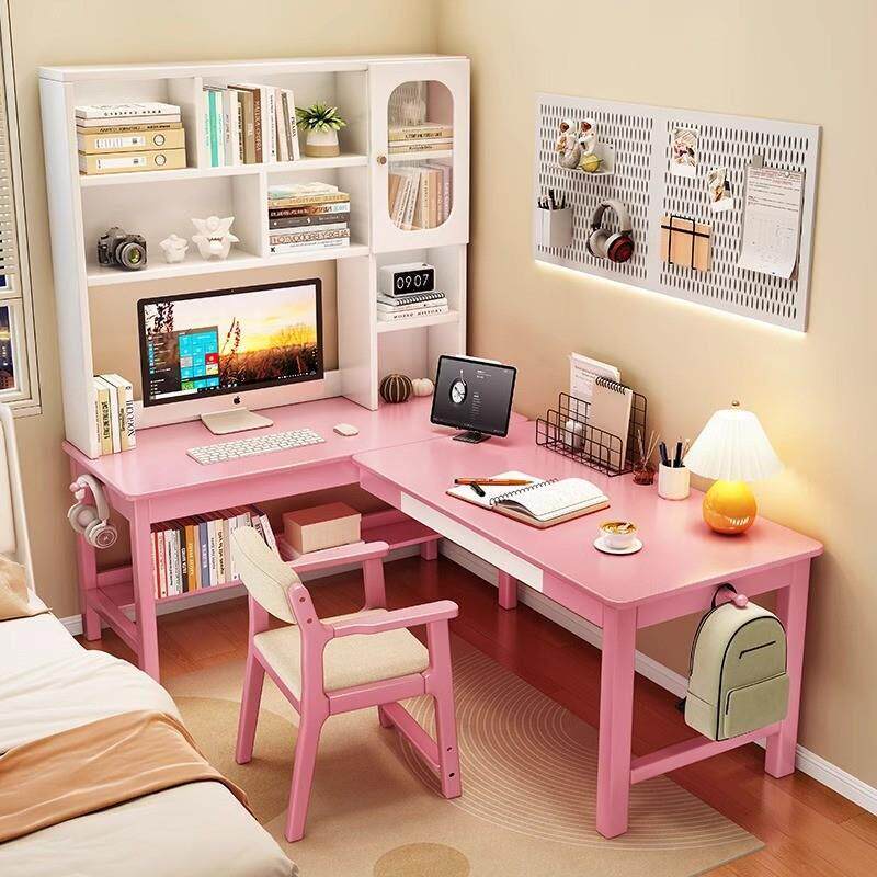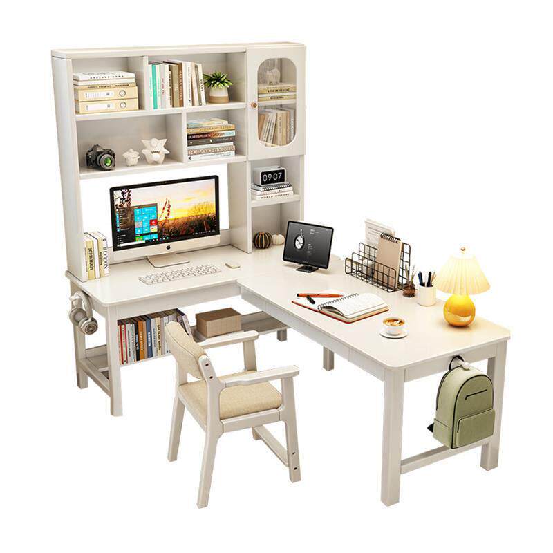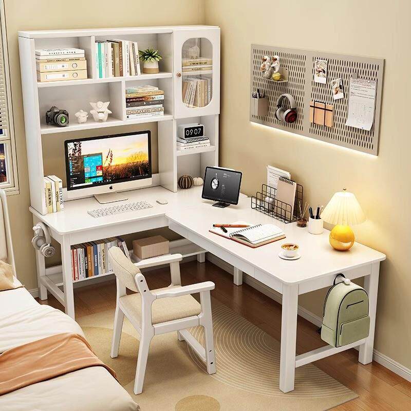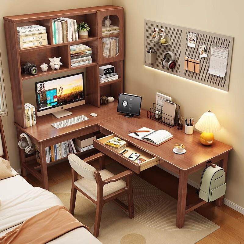 📚 橡木转角书桌书架一体桌L型电脑桌拐角工作台7字型书柜组合办公桌