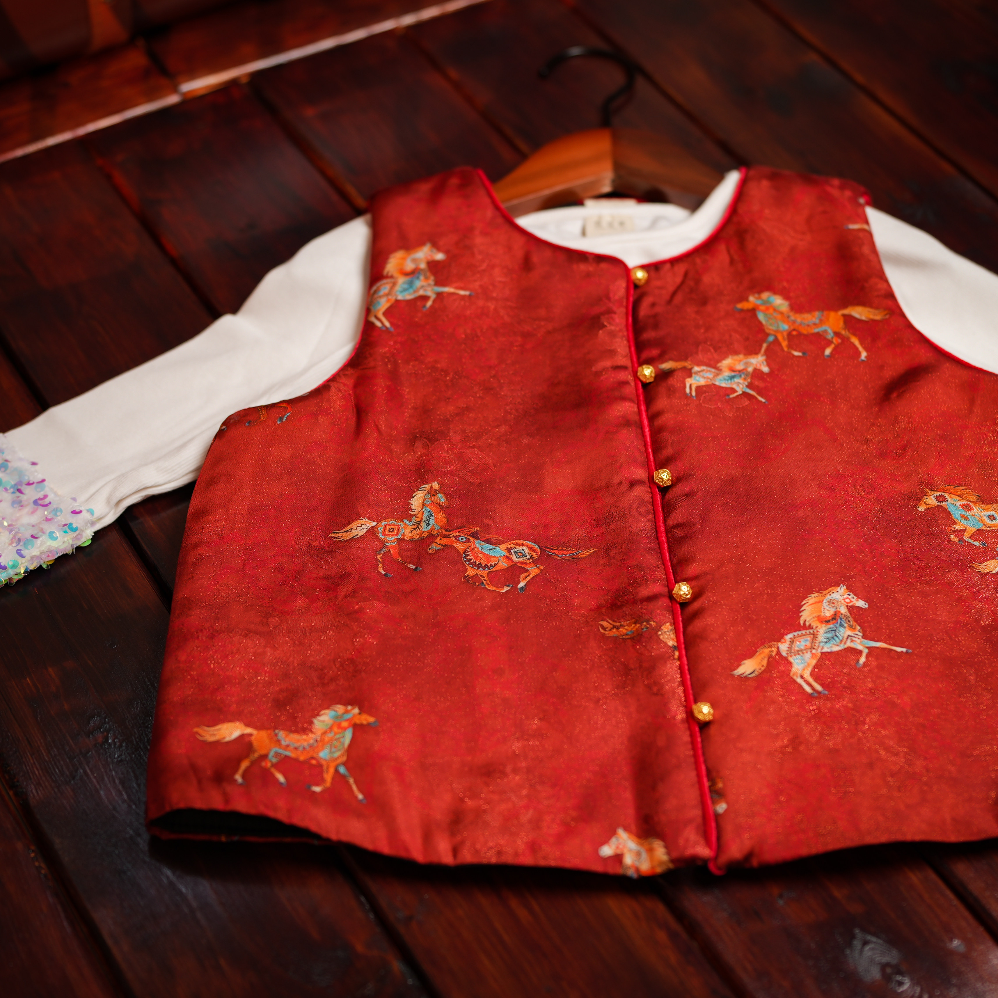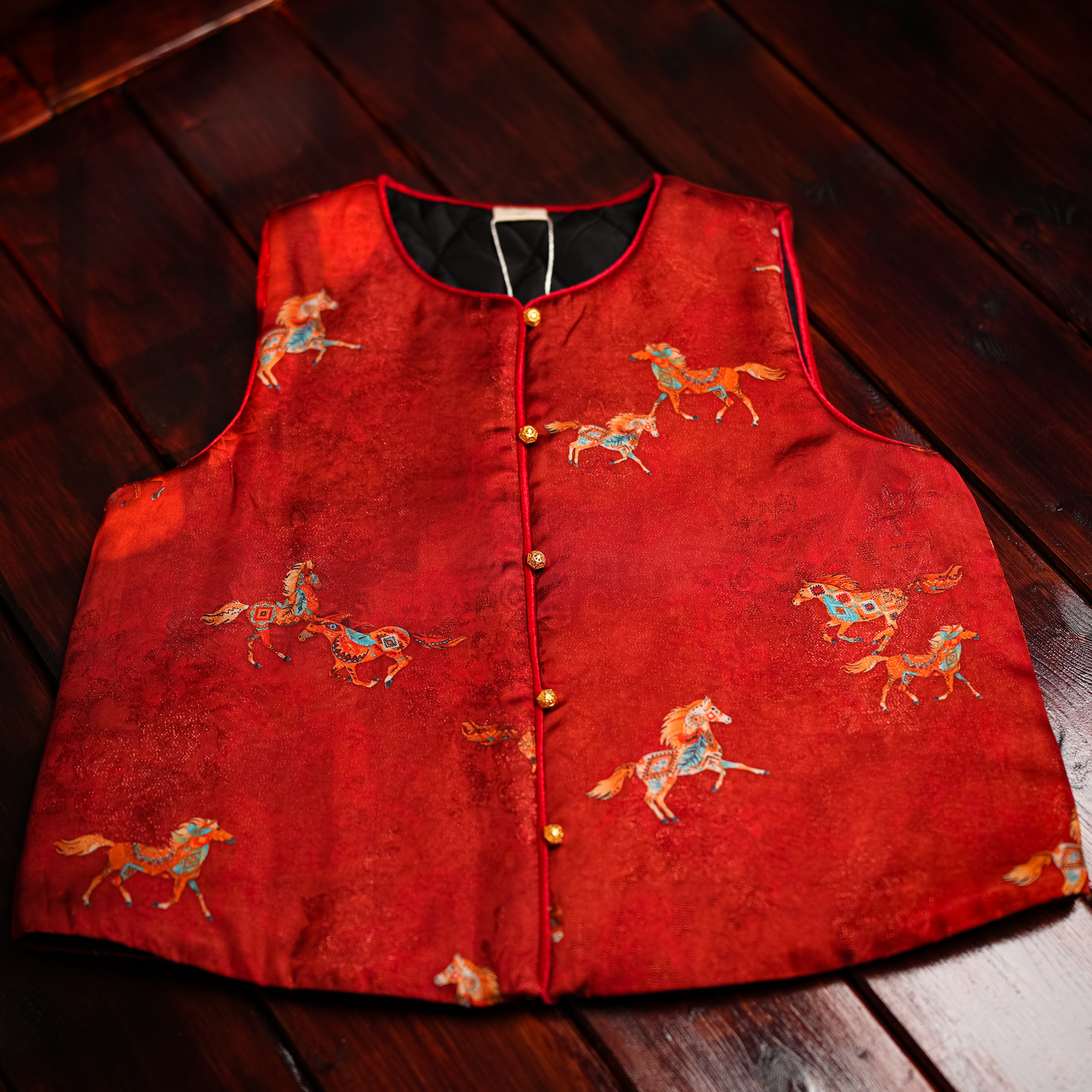 📚 真丝加人丝亲子款马甲女加厚拜年服红色中国风复古儿童唐装马甲