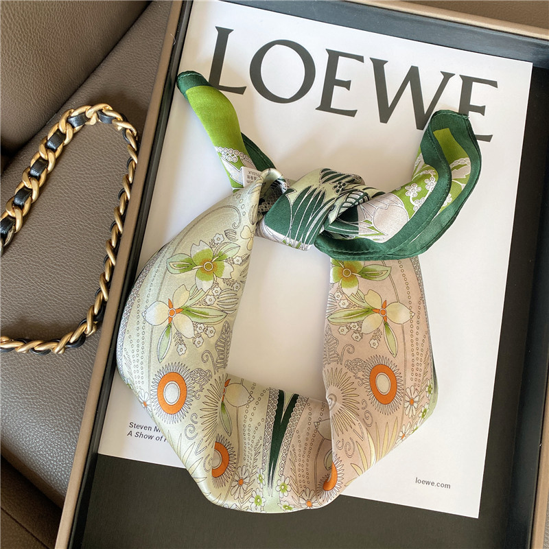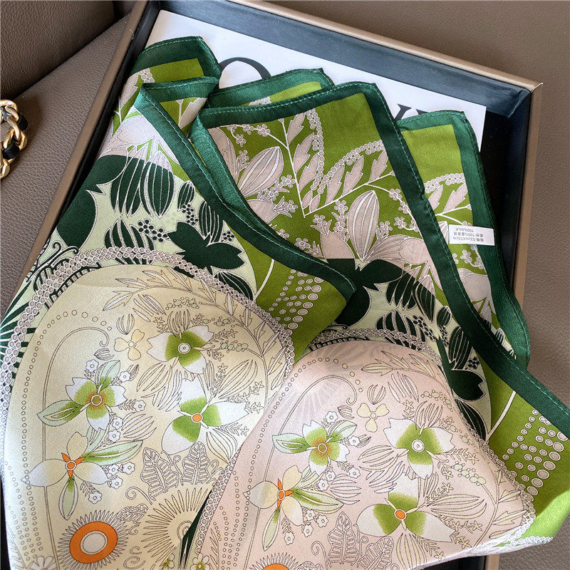 📚 夏日一抹绿春夏桑蚕丝围巾绿色小方巾百搭丝巾气质韩国真丝领巾女