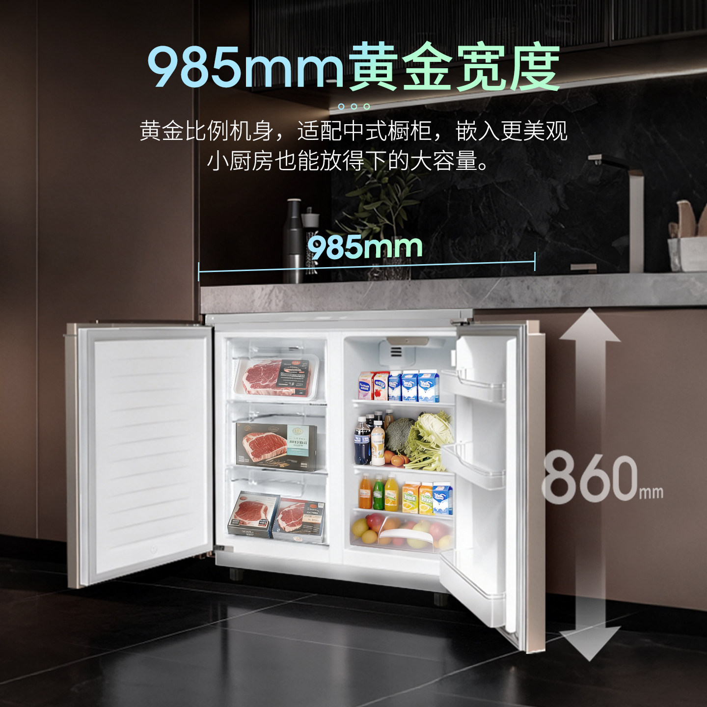 📚 索伊229L高贵风卧式冰箱大容量台下嵌入式变频无霜橱柜式矮冰箱