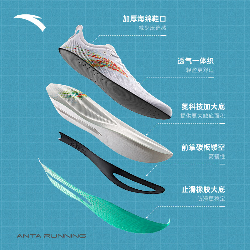 📚 安踏马力2代 格桑花丨全掌碳板专业马拉松训练长距离官方跑步鞋男