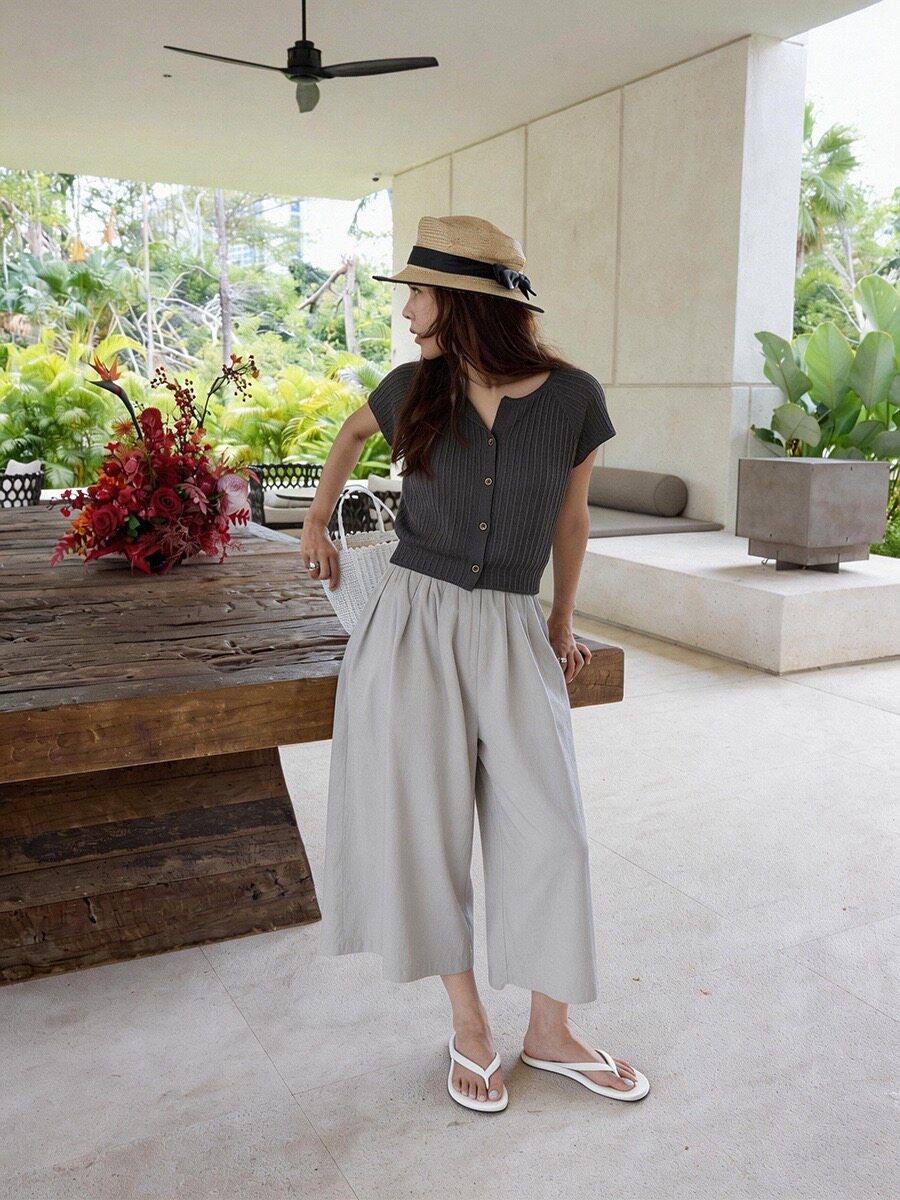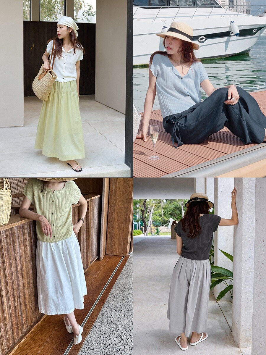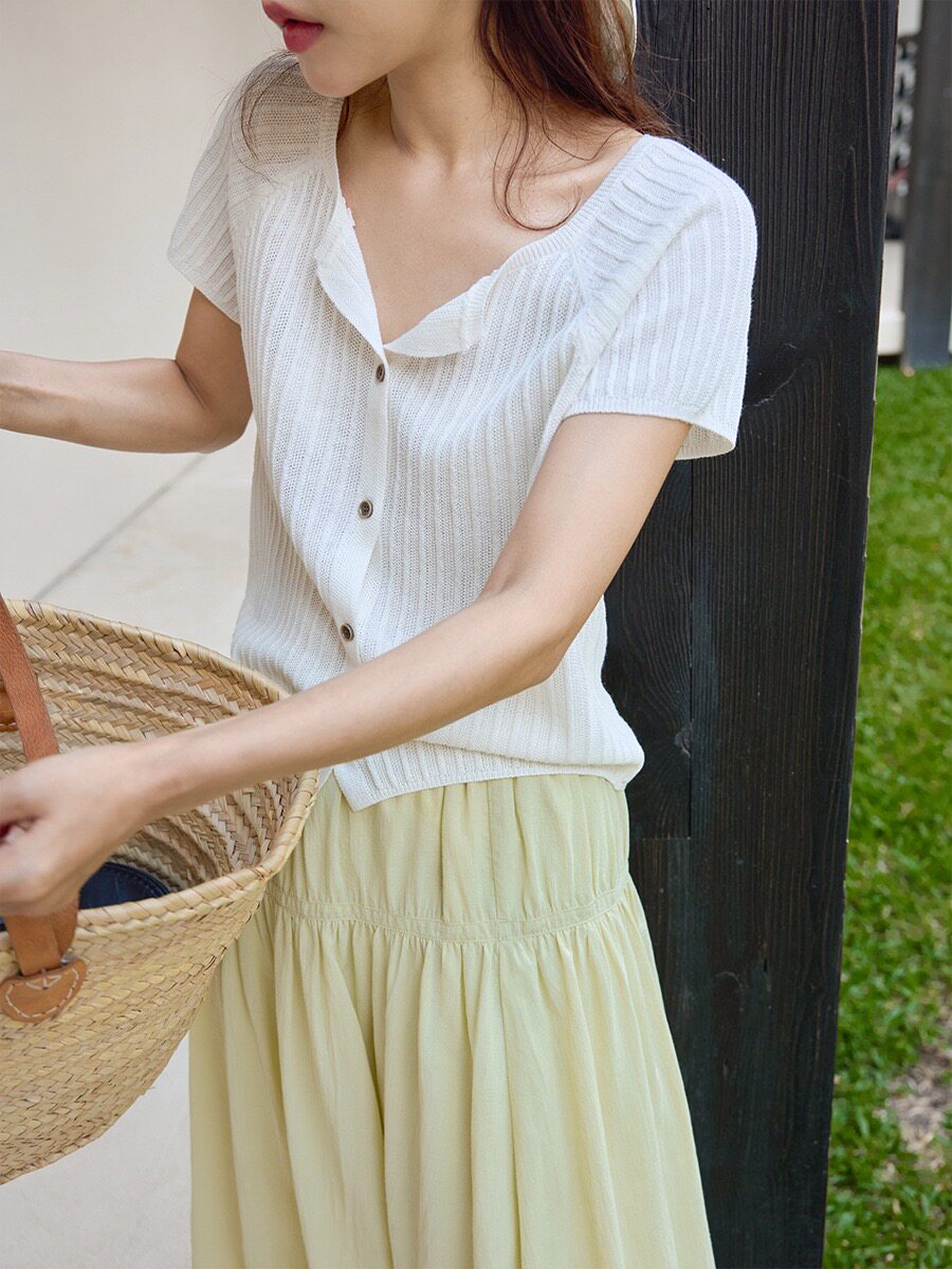 📚 acme ground小个子挚爱 干爽亚麻竹节显瘦V领短袖针织衫 20918