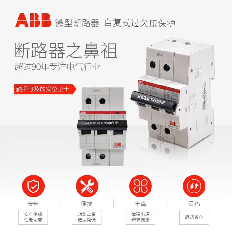 📚 ABB自复式过欠压保护断路器空气开关SH200系列2P/4P80A32安40A63a