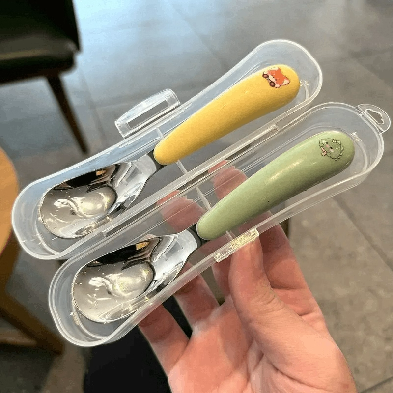 📚 婴幼儿童不锈钢元宝勺宝宝勺子婴儿勺子食品级儿童勺子餐具盒