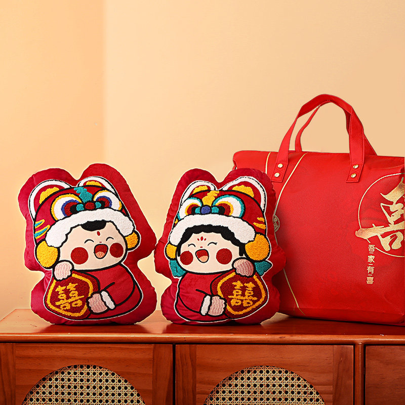 📚 压床娃娃一对结婚新款高档红色喜字抱枕新婚婚庆公仔喜娃金童玉女