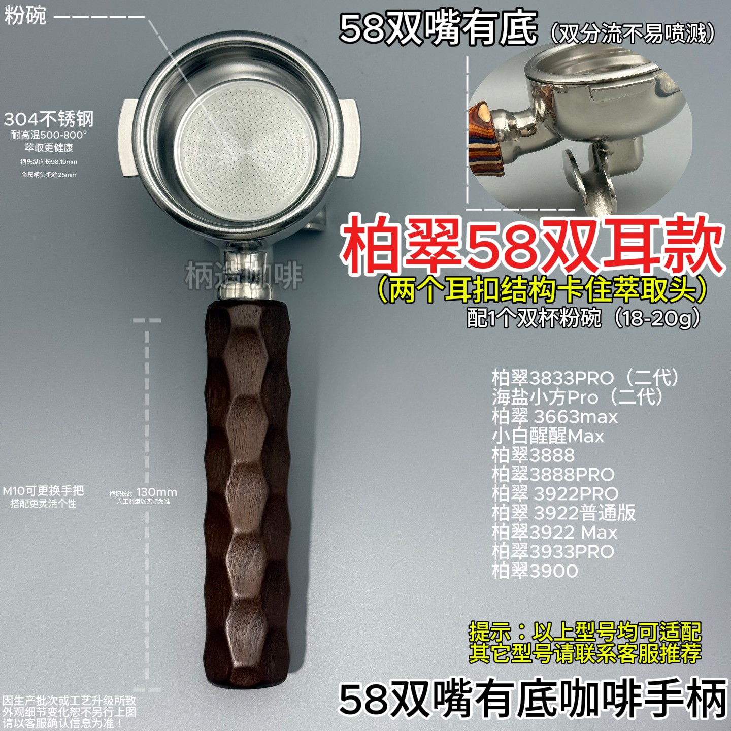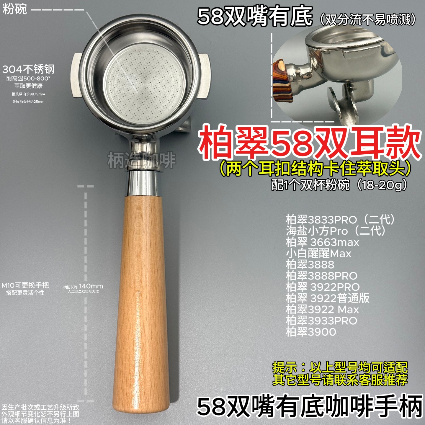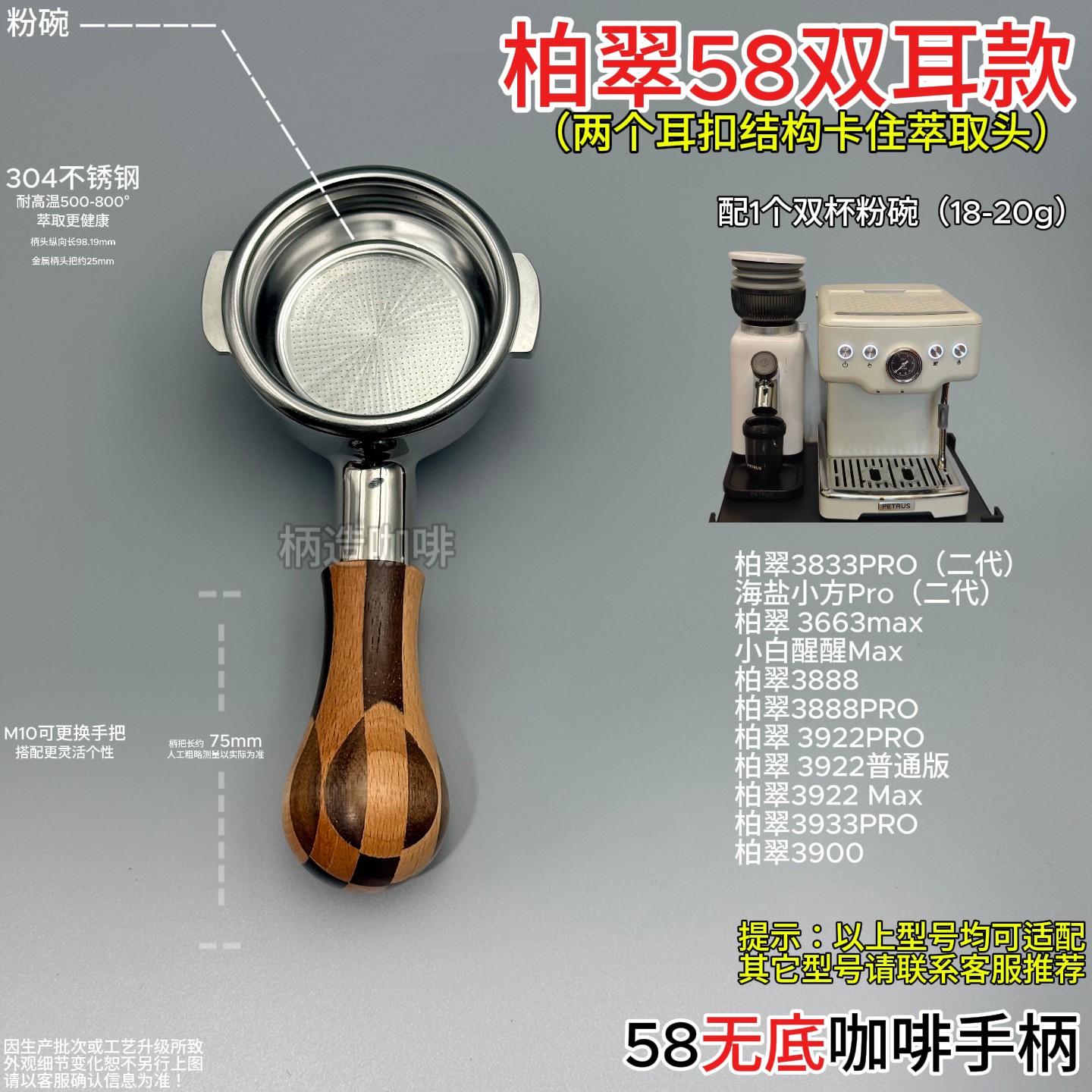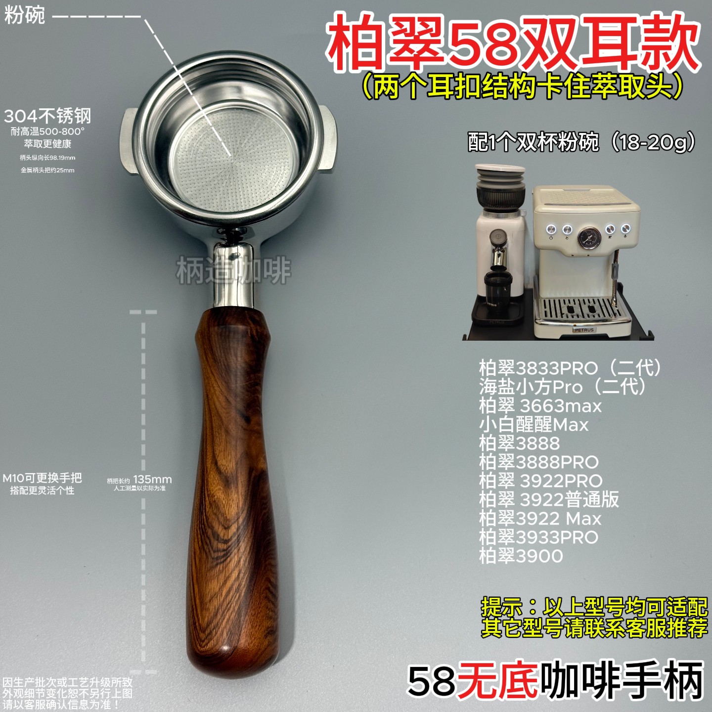 📚 柏翠款双耳58mm无底手柄海盐小方3833Pro、3922Max、3900、3888等