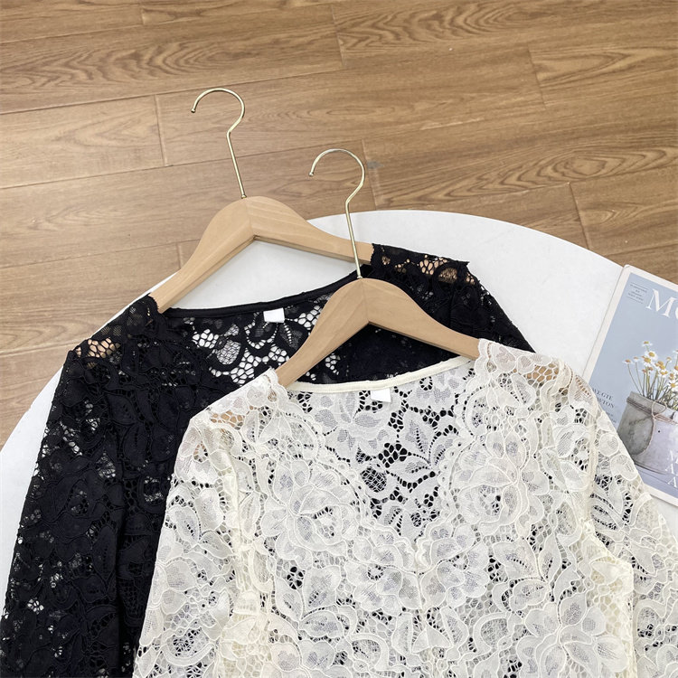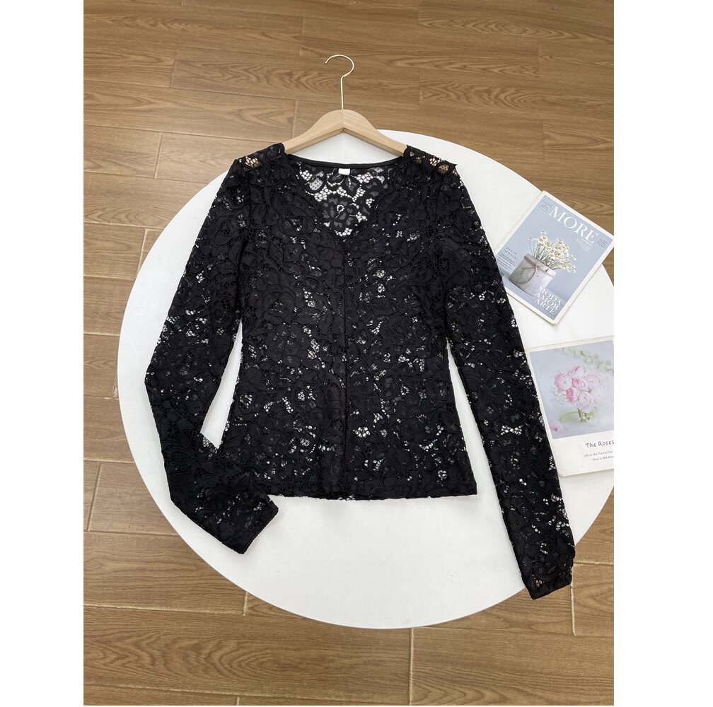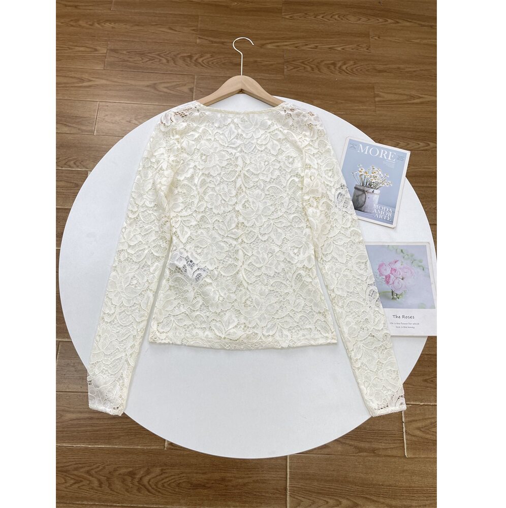 📚 I1精致蕾丝镂空欧单纯元26春新款女长袖V 领打底衫上衣法式优美