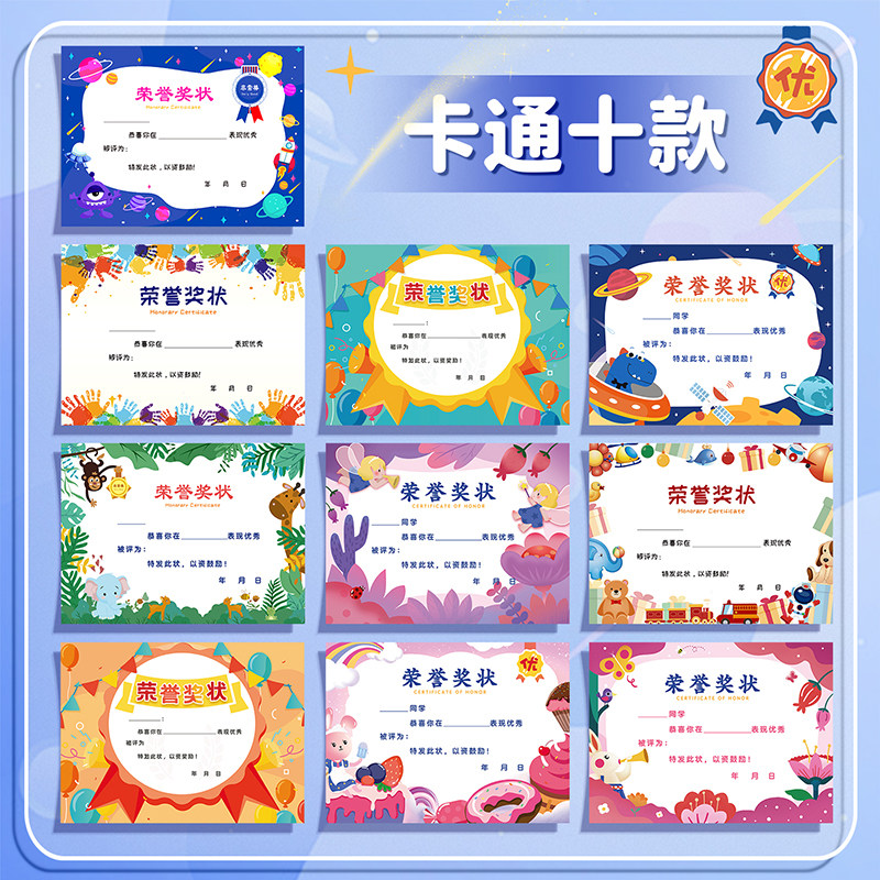 📚 小学生小朋友奖状a4定制可打印空白可爱卡通创意小奖状纸儿童毕业幼儿园全勤宝宝表扬信三好学生荣誉证书奖励