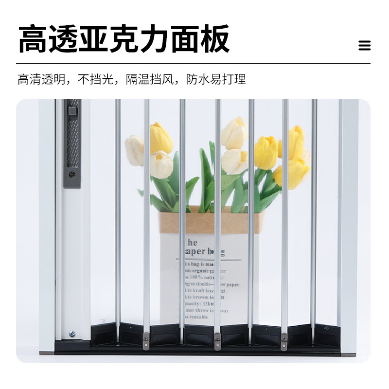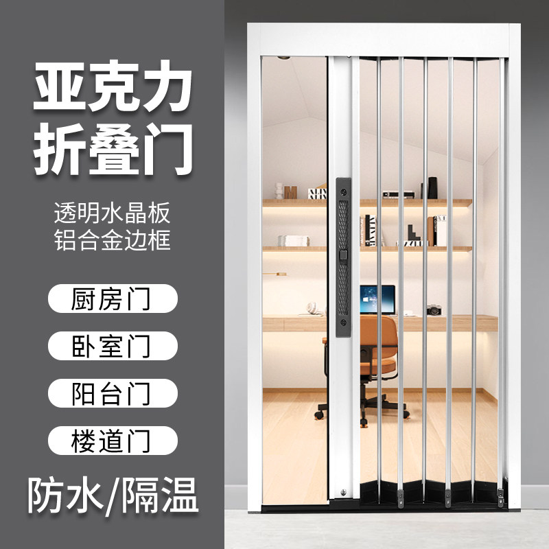 📚 透明亚克力水晶折叠门推拉门隐形免打孔开放式厨房客厅空调隔断门
