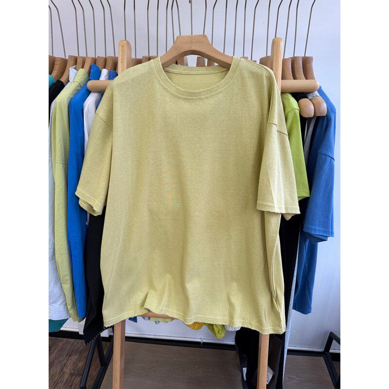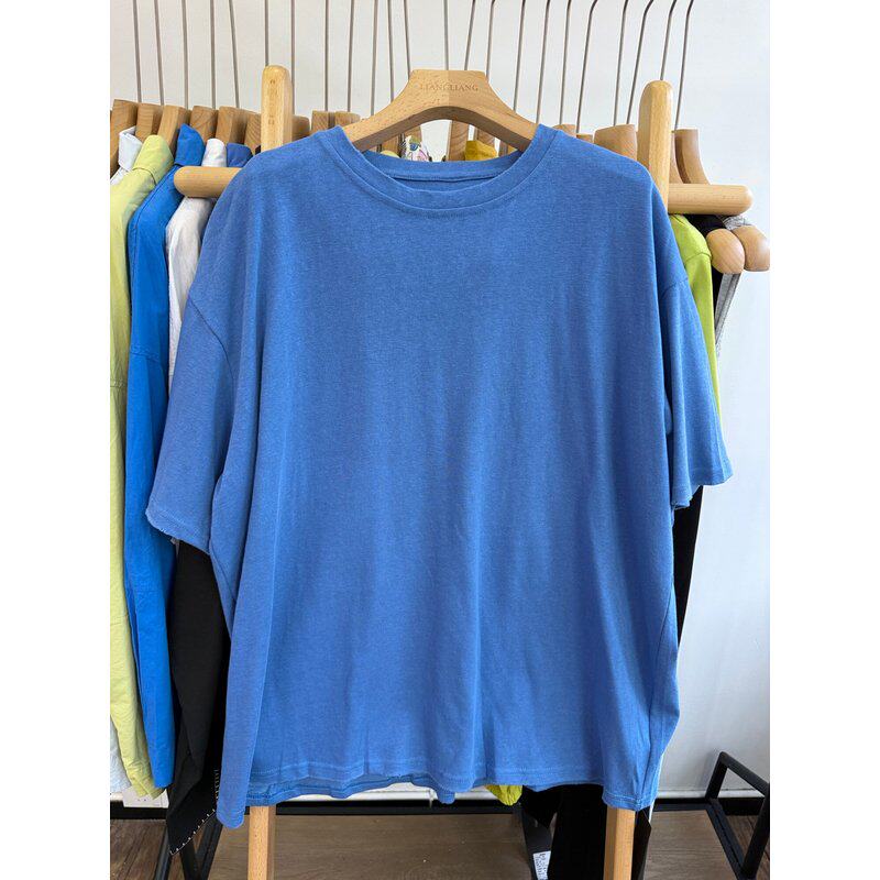 📚 小王家女装23185春夏韩版宽松大码胖mm慵懒休闲风简约纯色短袖T恤