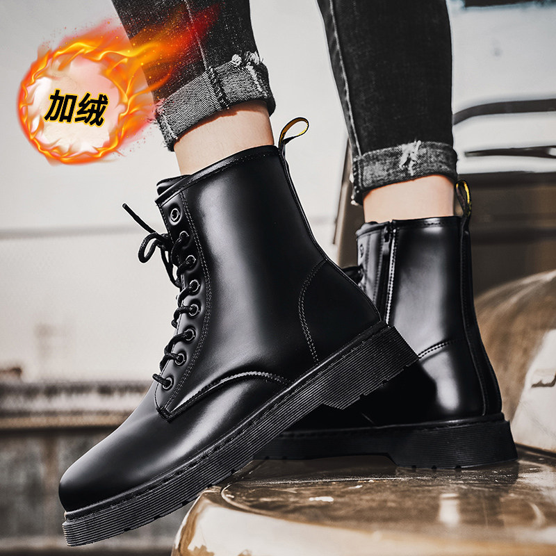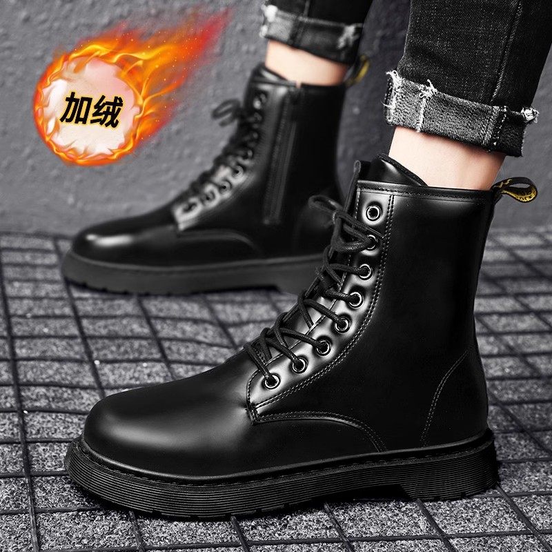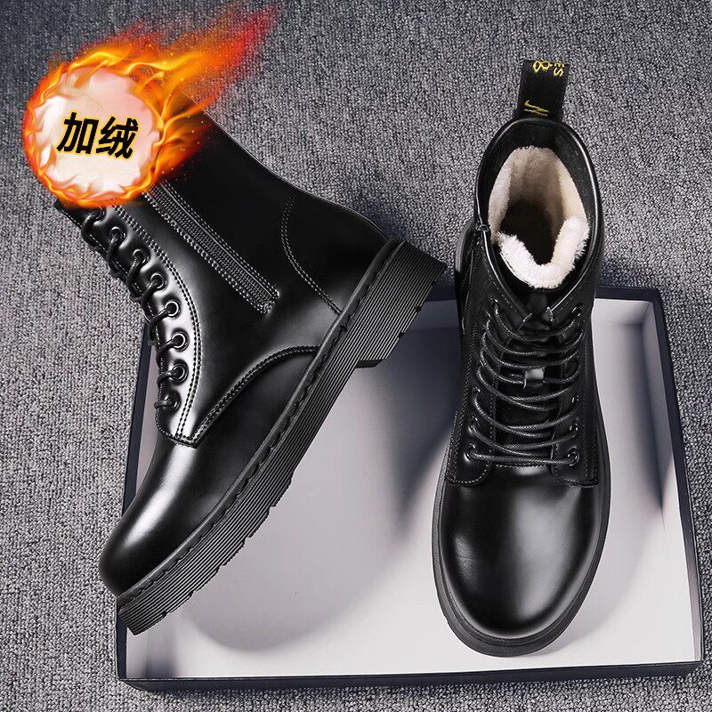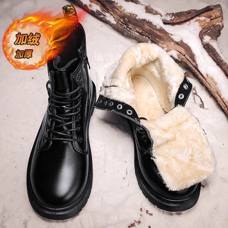 📚 马丁靴男款冬季高帮黑色机车防水休闲皮鞋加绒加厚保暖防寒雪地靴