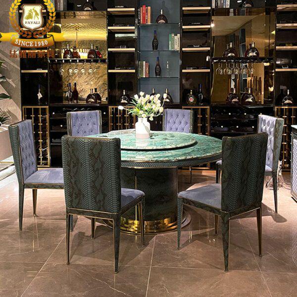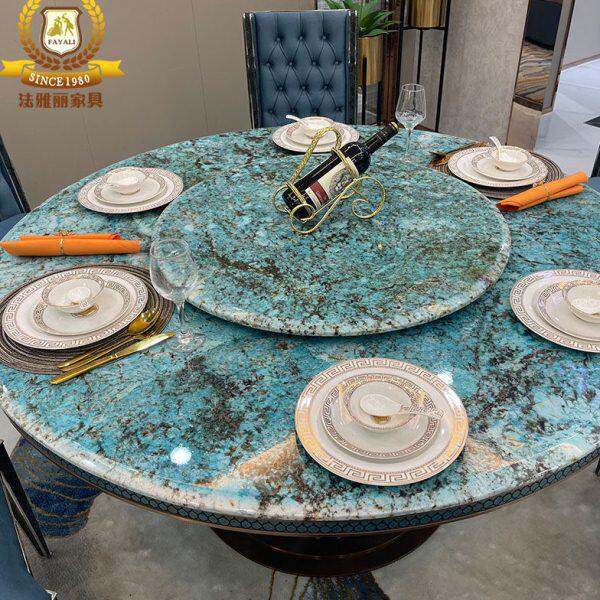 📚 意式轻奢大理石圆餐桌宾利后现代简约吃饭桌子卢浮宫巴夏别墅高端