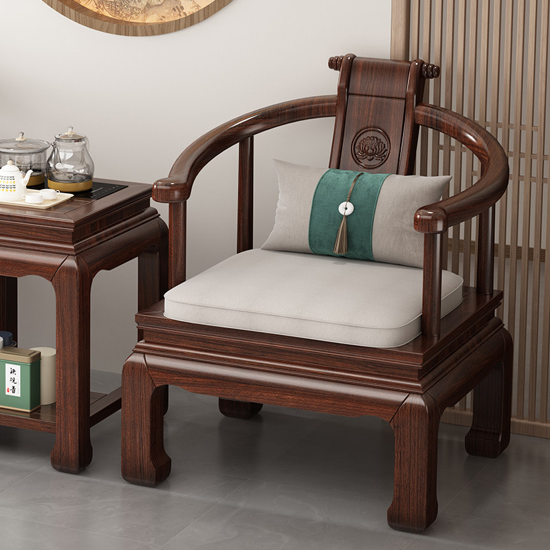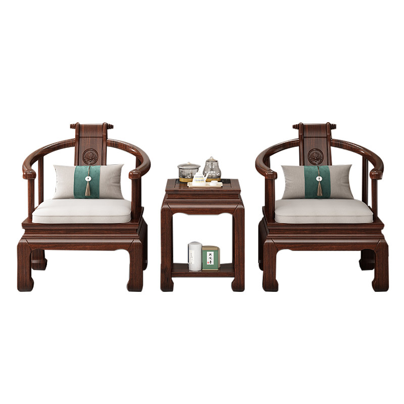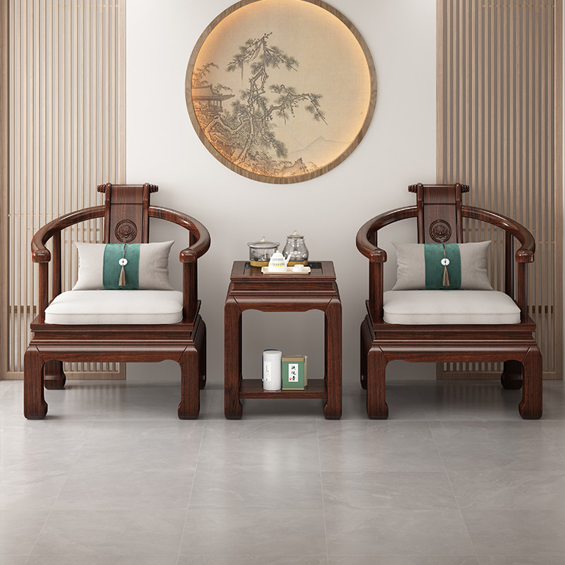 📚 新中式太师椅圈椅三件套全实木榫卯仿古乌金木围椅家用围椅泡茶桌